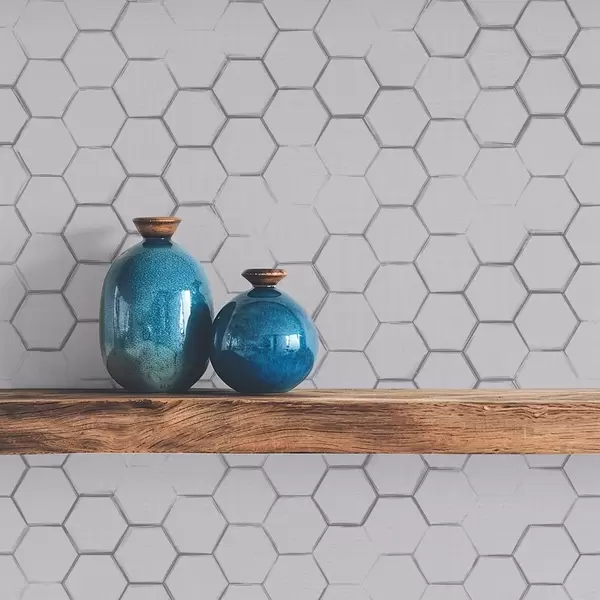 Ταπετσαρία Λεπτό εξαγωνικό πλέγμα σε ανοιχτό γκρι φόντο με υφή Nr. a01060