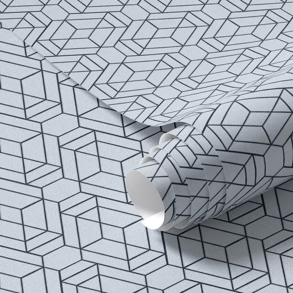 Ταπετσαρία Ανοιχτό μπλε γεωμετρικό μοτίβο κύβων Nr. a01066