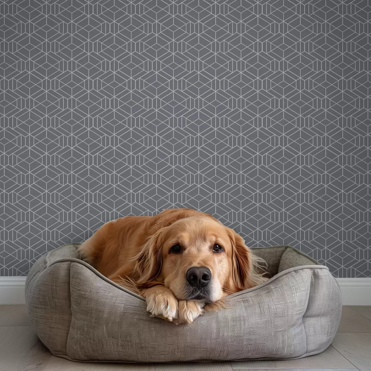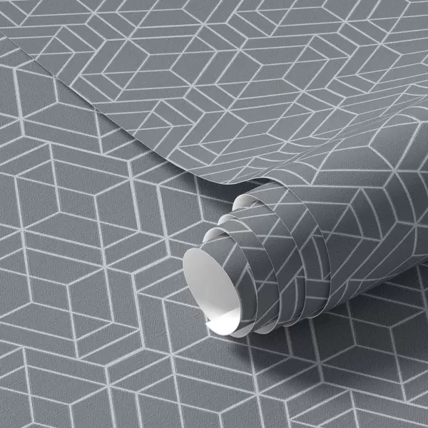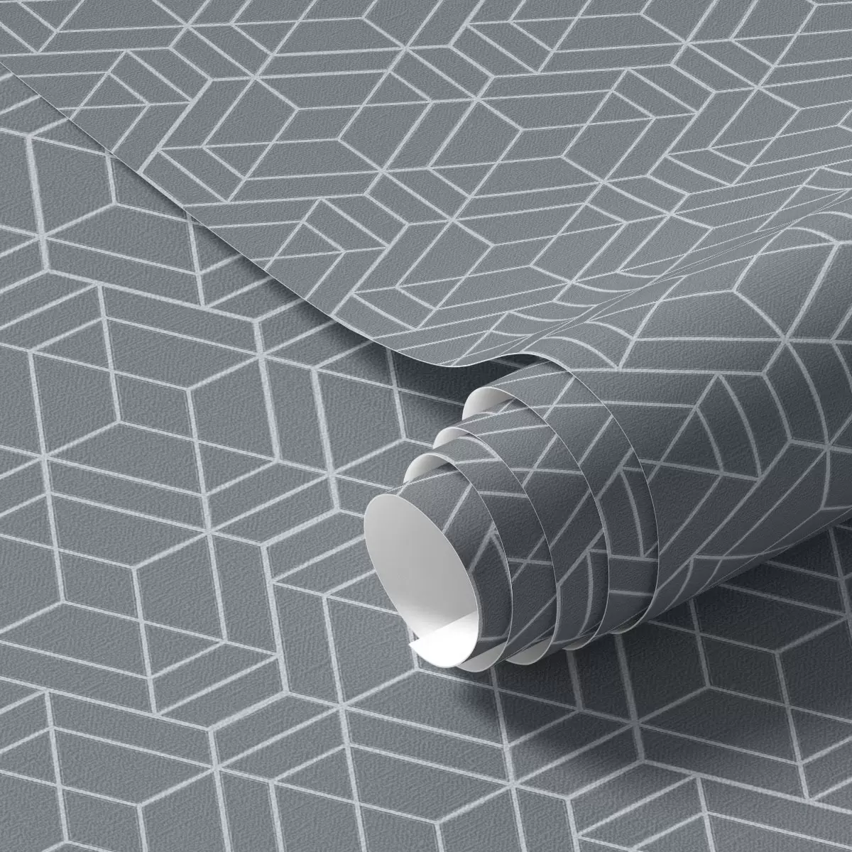 Ταπετσαρία Γκρι φόντο με λευκούς τρισδιάστατους κύβους σε πλέγμα Nr. a01067v2