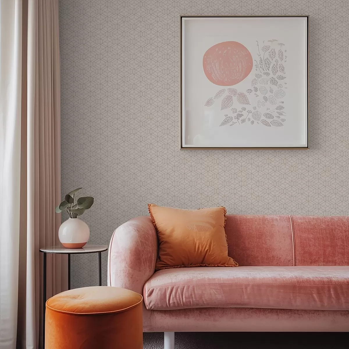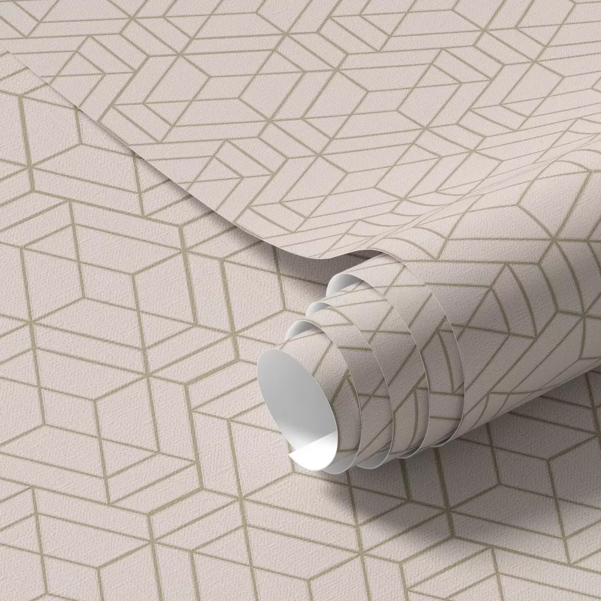 Ταπετσαρία Ζεστό μπεζ φόντο με λεπτούς γραφικούς κύβους Nr. a01067v3