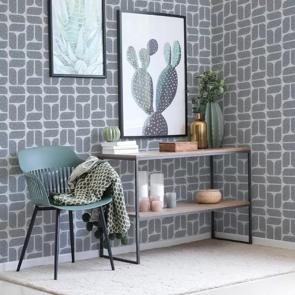 Ταπετσαρία Γκρι μωσαϊκό με εναλλασσόμενα στρογγυλά και ορθογώνια σχήματα Nr. a01069