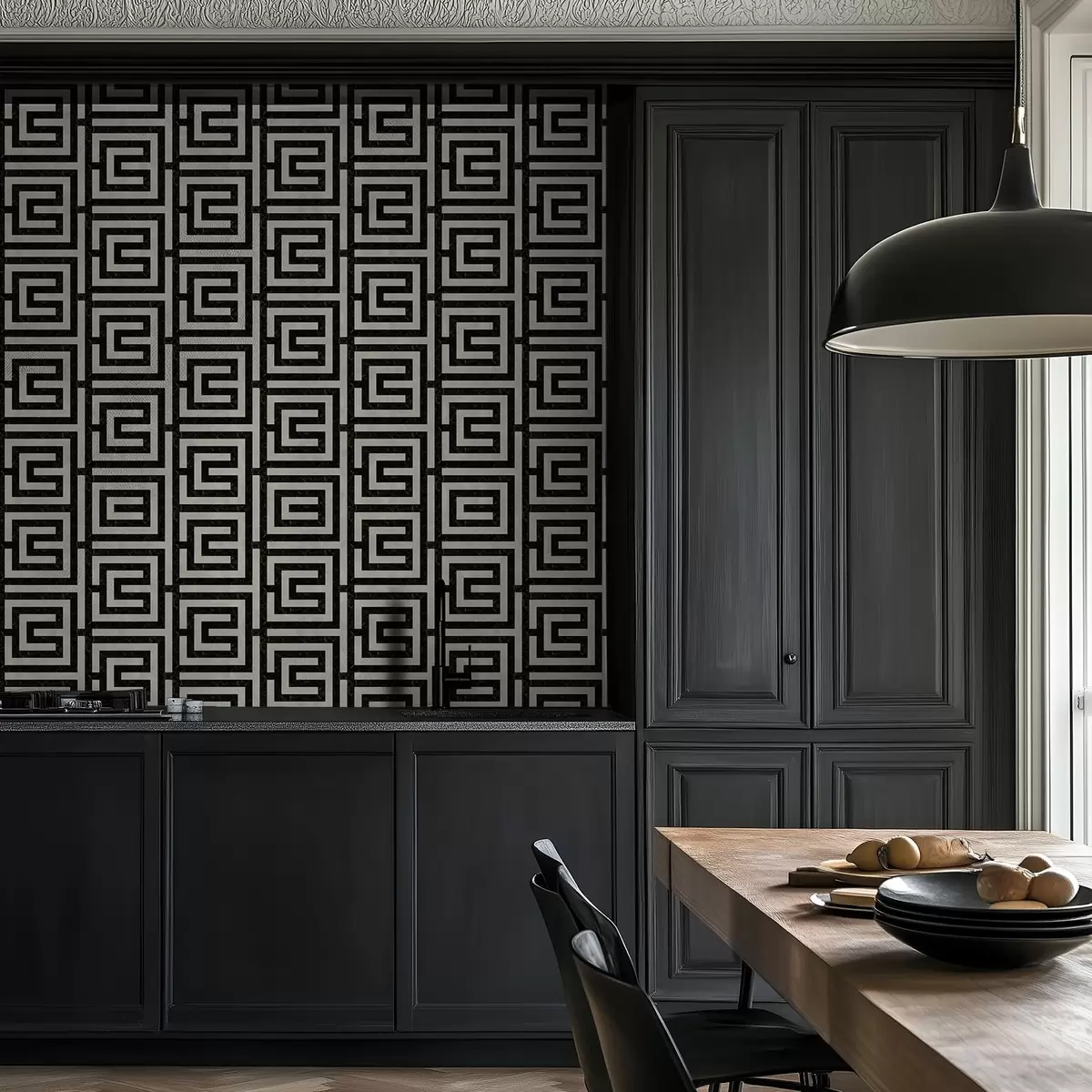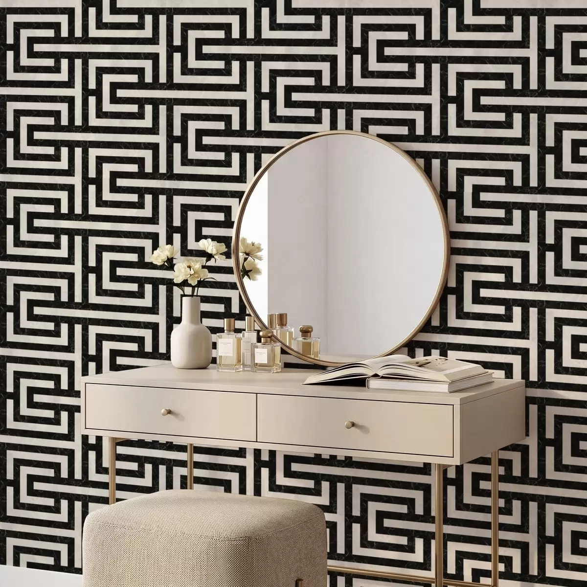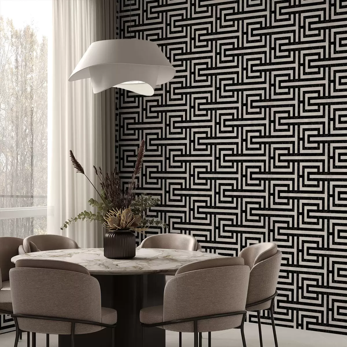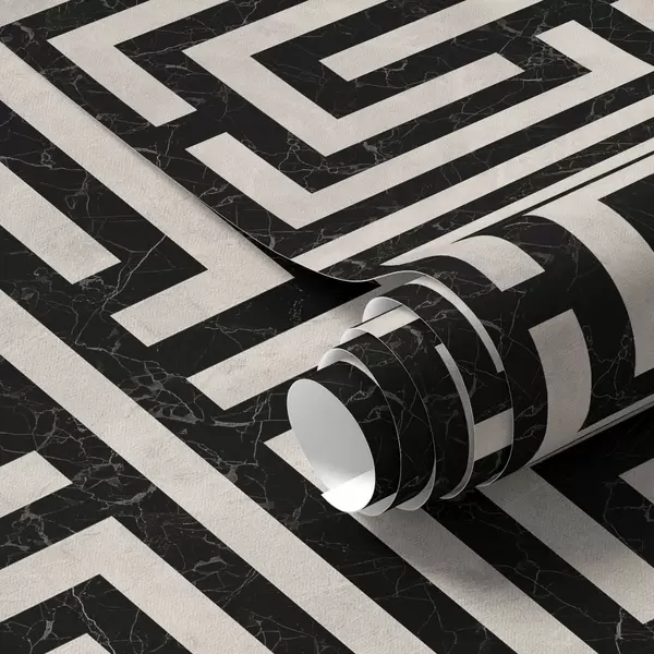 Ταπετσαρία Μαύρο και άσπρο γεωμετρικό μοτίβο λαβυρίνθου Nr. a01073