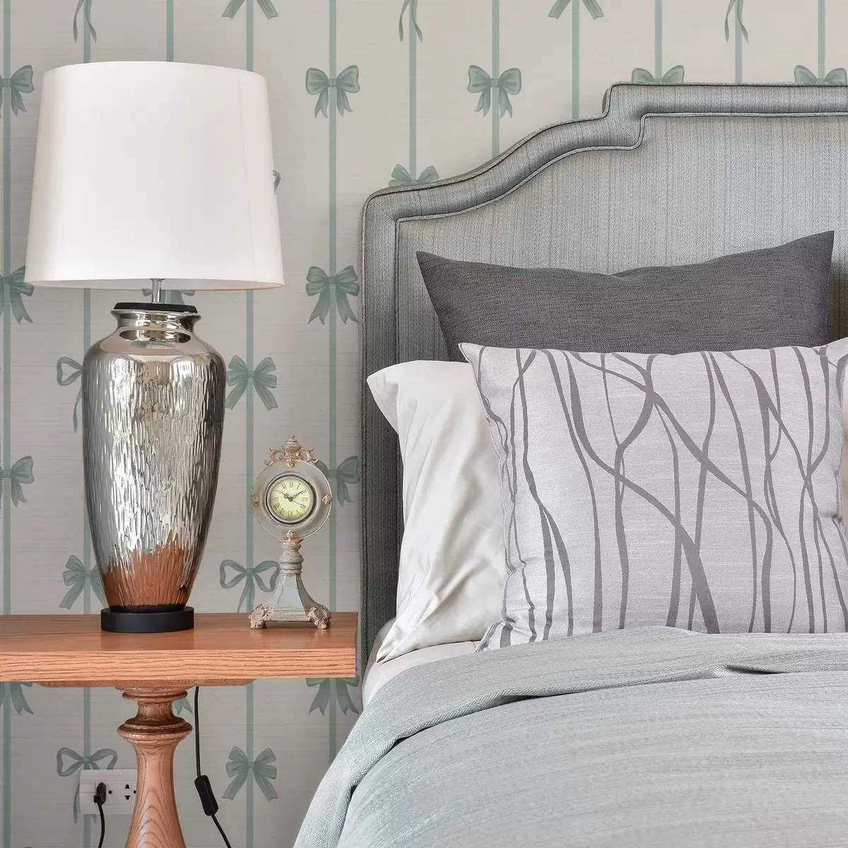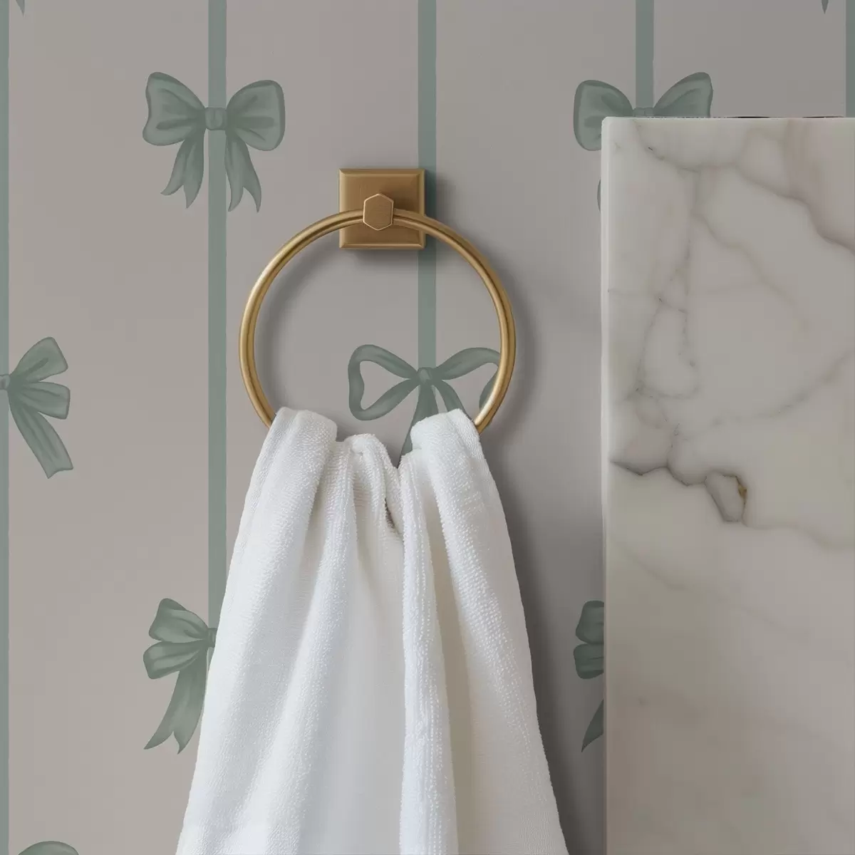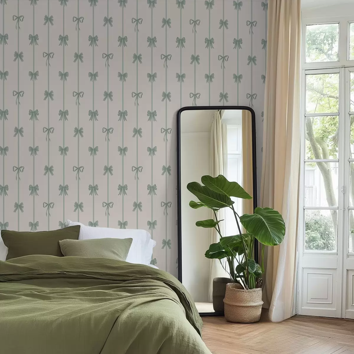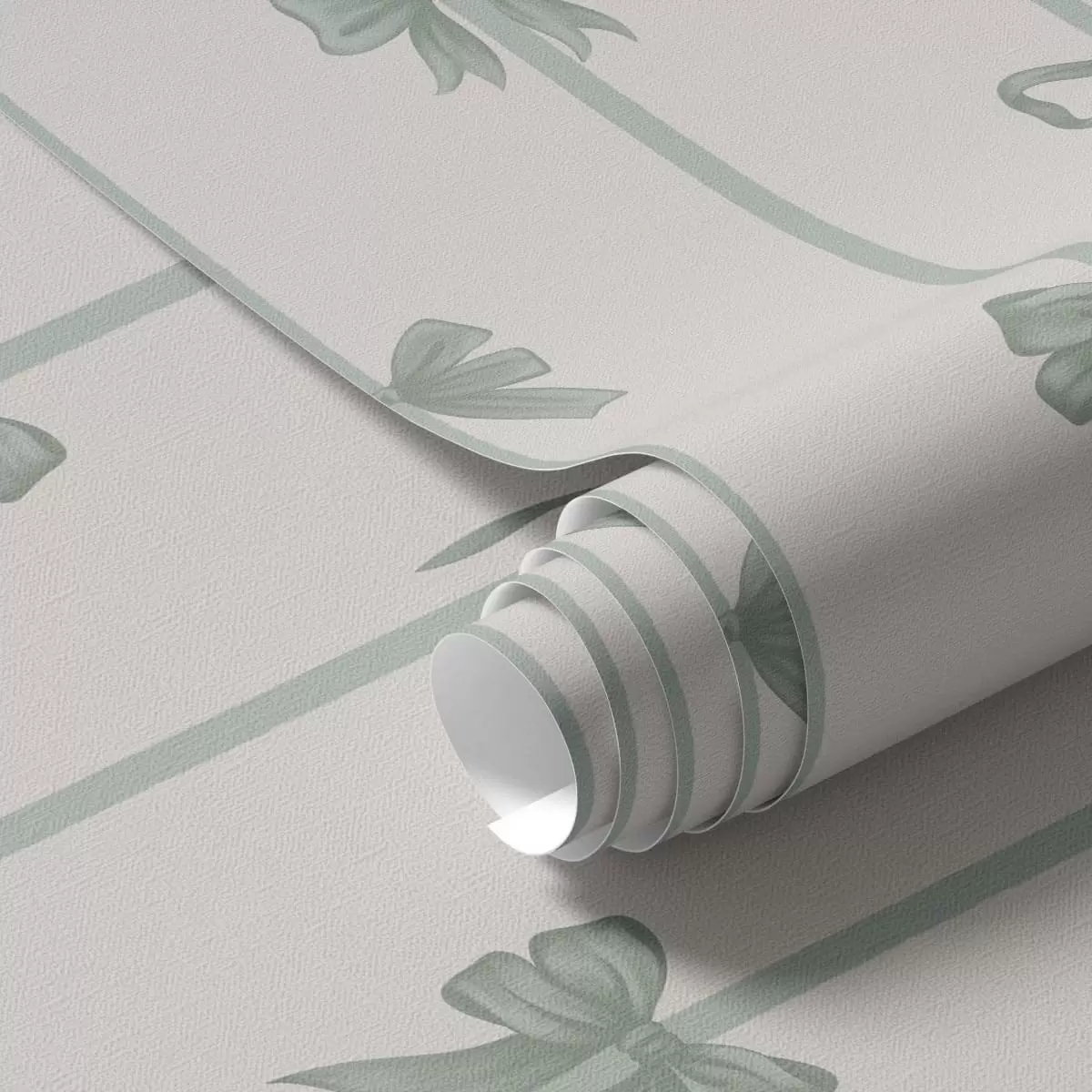 Ταπετσαρία Πράσινα φιόγκια με κορδέλες σε μπεζ φόντο Nr. a01074v1