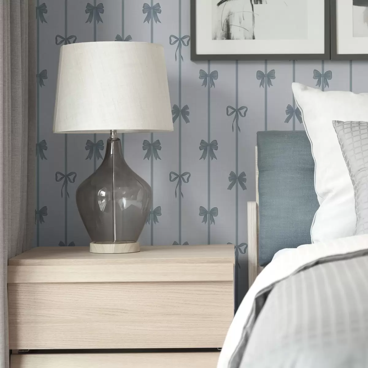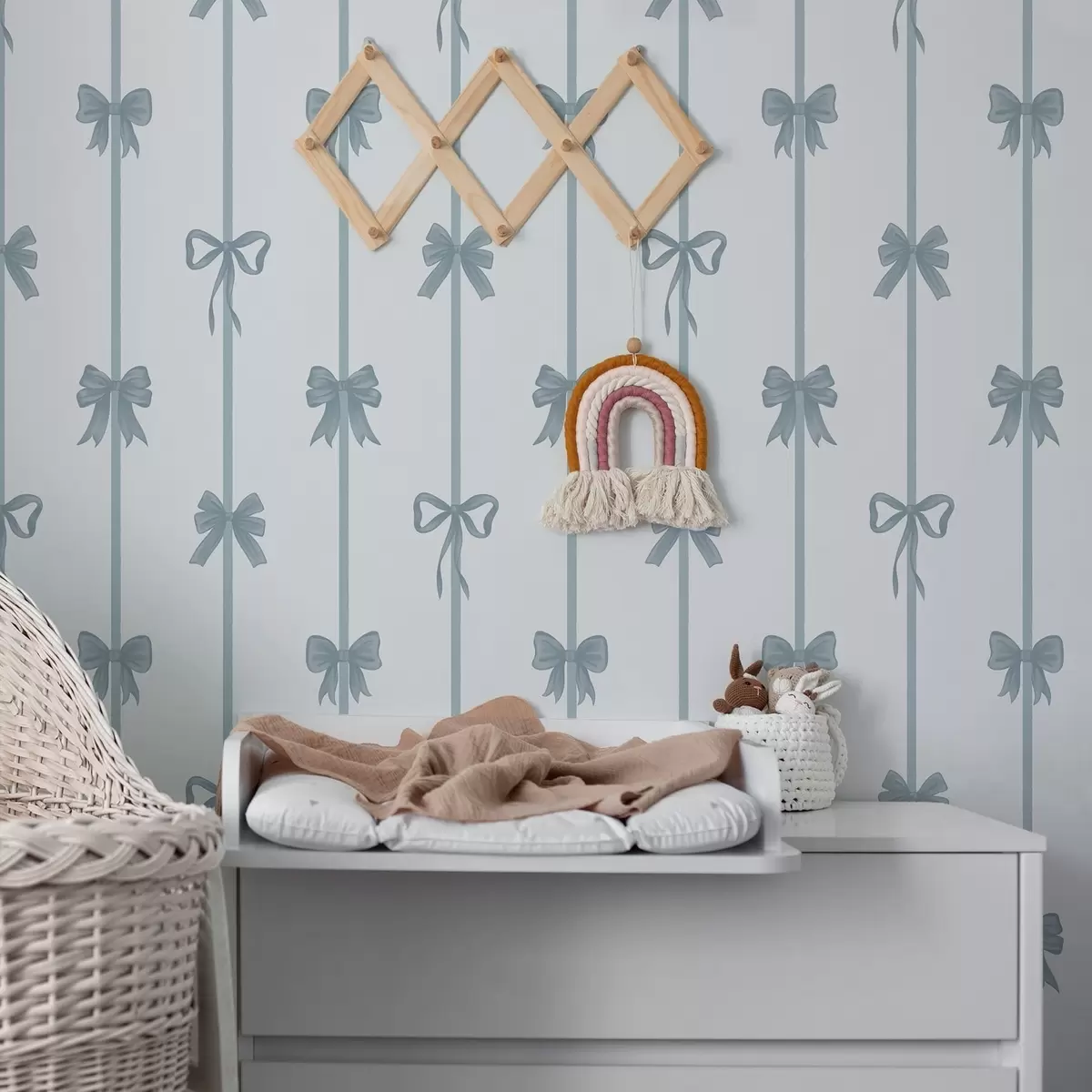 Ταπετσαρία Μπλε φιόγκοι με κορδέλες σε ανοιχτόχρωμο φόντο Nr. a01074v2