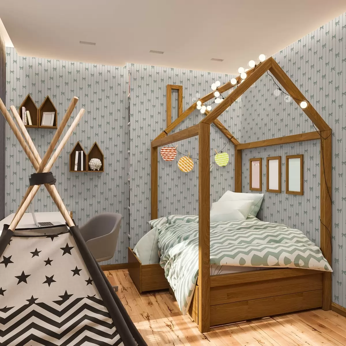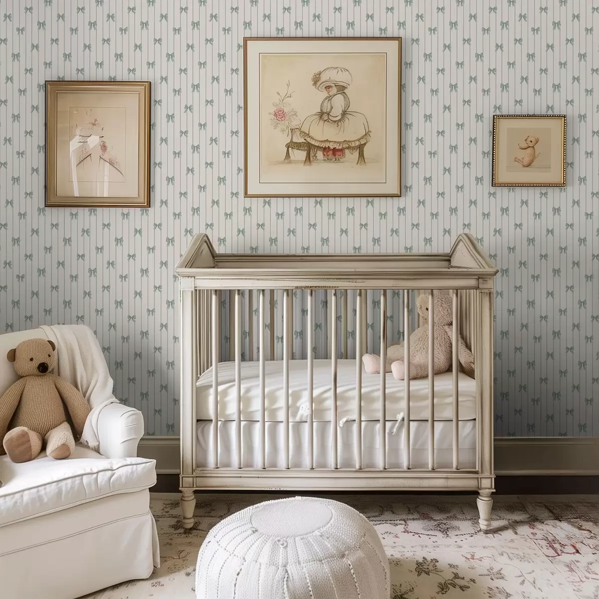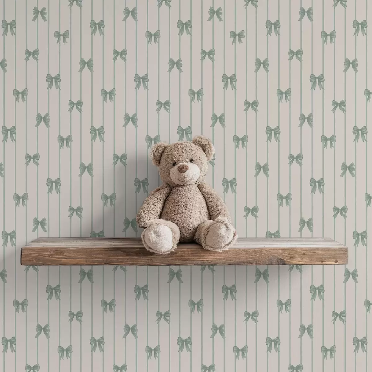 Ταπετσαρία Μικρά πράσινα φιόγκια με ρίγες σε μπεζ φόντο Nr. a01076v2