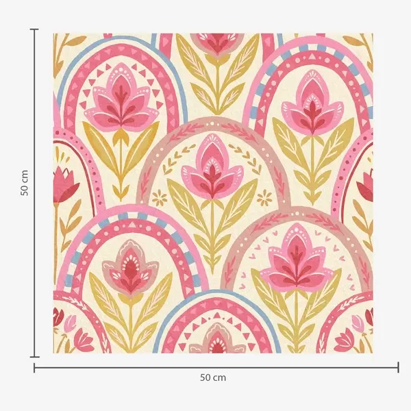 Ταπετσαρία Αψίδες με ροζ λουλούδια σε λαϊκό μοτίβο Nr. a01080