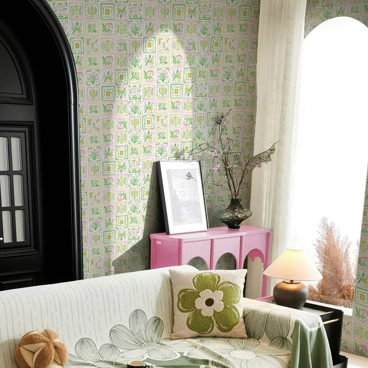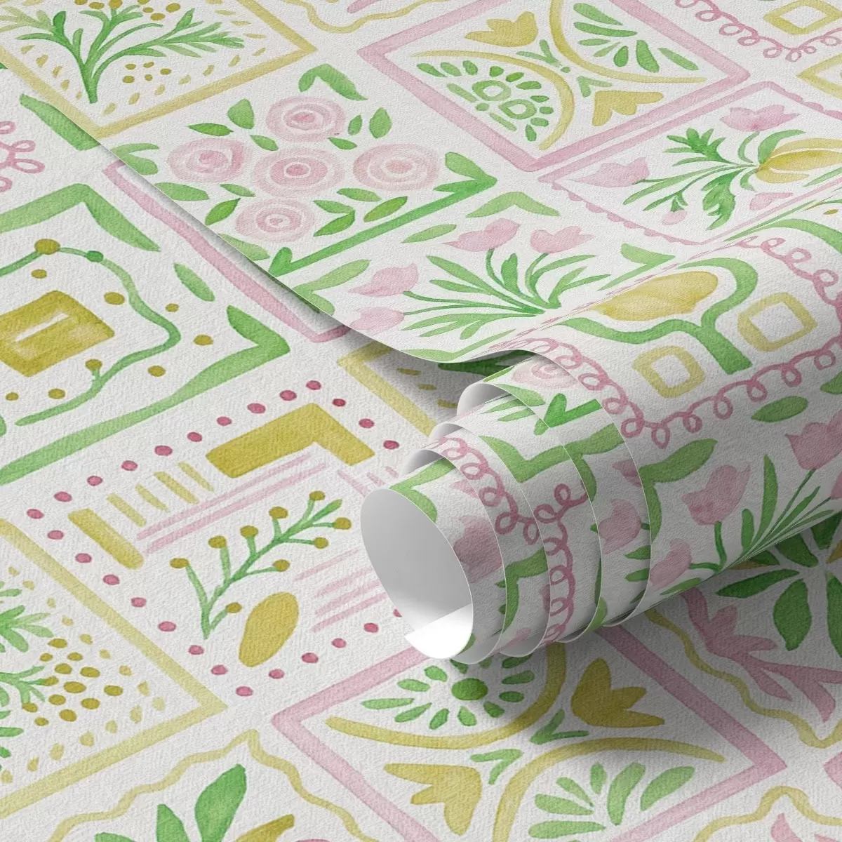 Ταπετσαρία Ακουαρέλα με ροζ και πράσινα κλαδιά Nr. a01082
