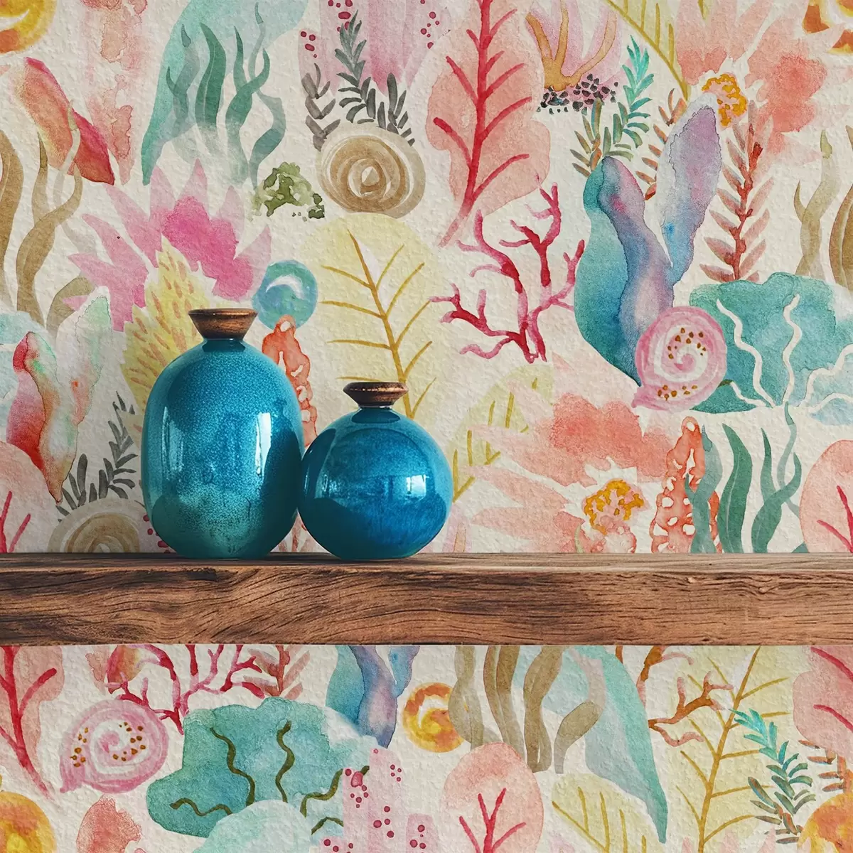 Ταπετσαρία Υδατογραφία υποβρύχιου κήπου με κοράλλια και φύκια Nr. a01083