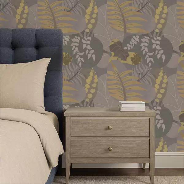 Ταπετσαρία Αφηρημένα φύλλα σε αποχρώσεις του γκρι και του κίτρινου Nr. a01112