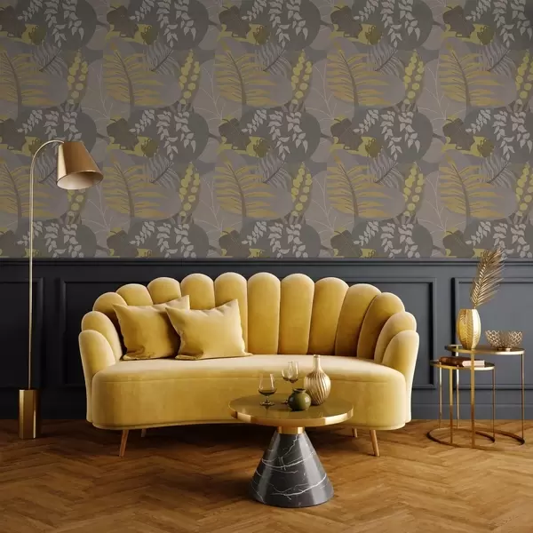 Ταπετσαρία Αφηρημένα φύλλα σε αποχρώσεις του γκρι και του κίτρινου Nr. a01112