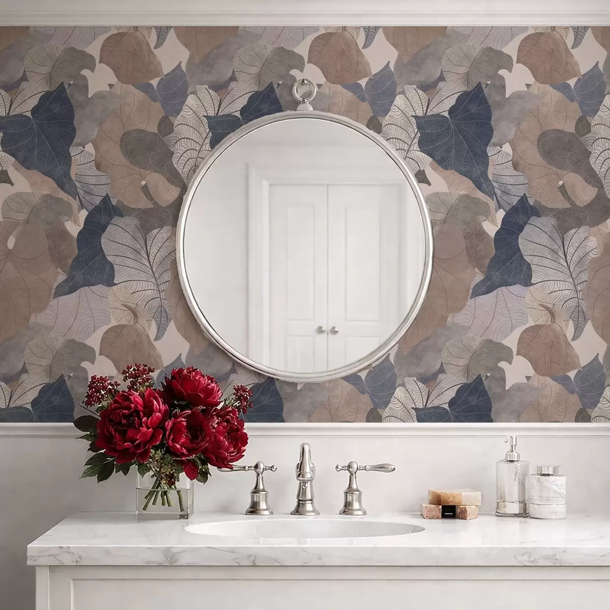 Ταπετσαρία Μεγάλα στυλιζαρισμένα φύλλα σε παστέλ αποχρώσεις Nr. a01115