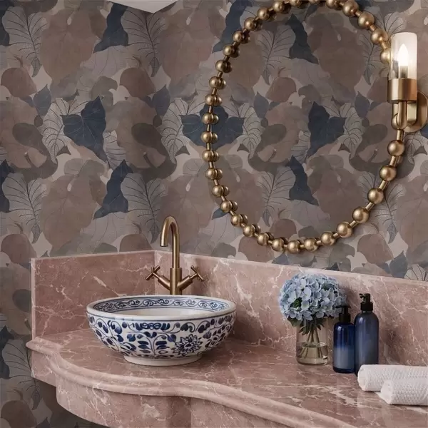 Ταπετσαρία Μεγάλα στυλιζαρισμένα φύλλα σε παστέλ αποχρώσεις Nr. a01115