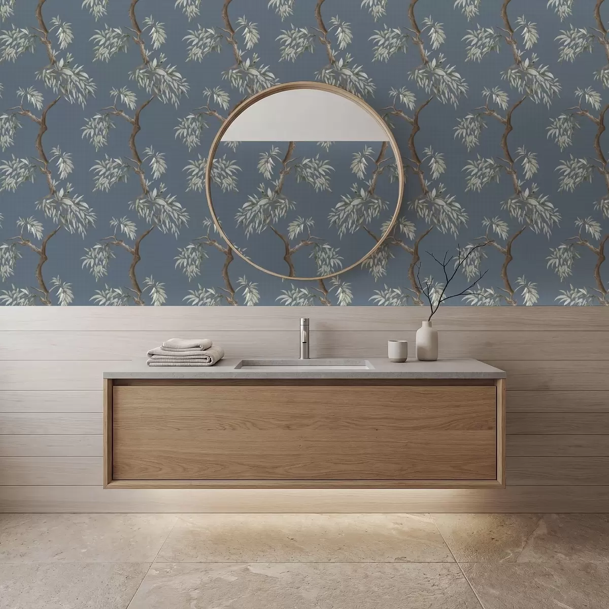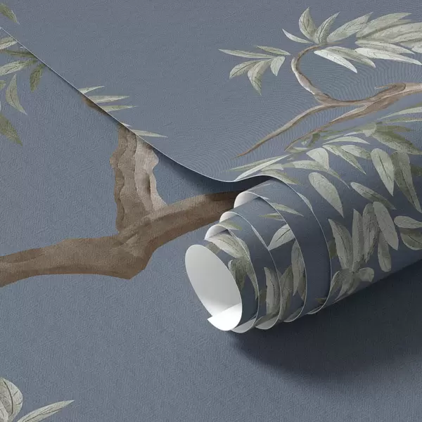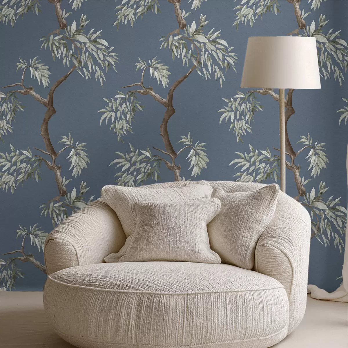 Ταπετσαρία Κλαδί δέντρου με φύλλα σε μπλε φόντο Nr. a01117