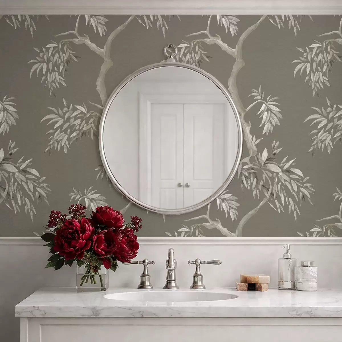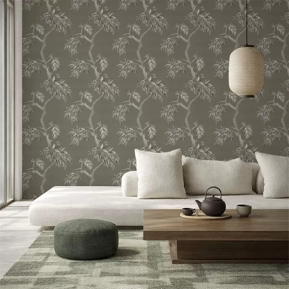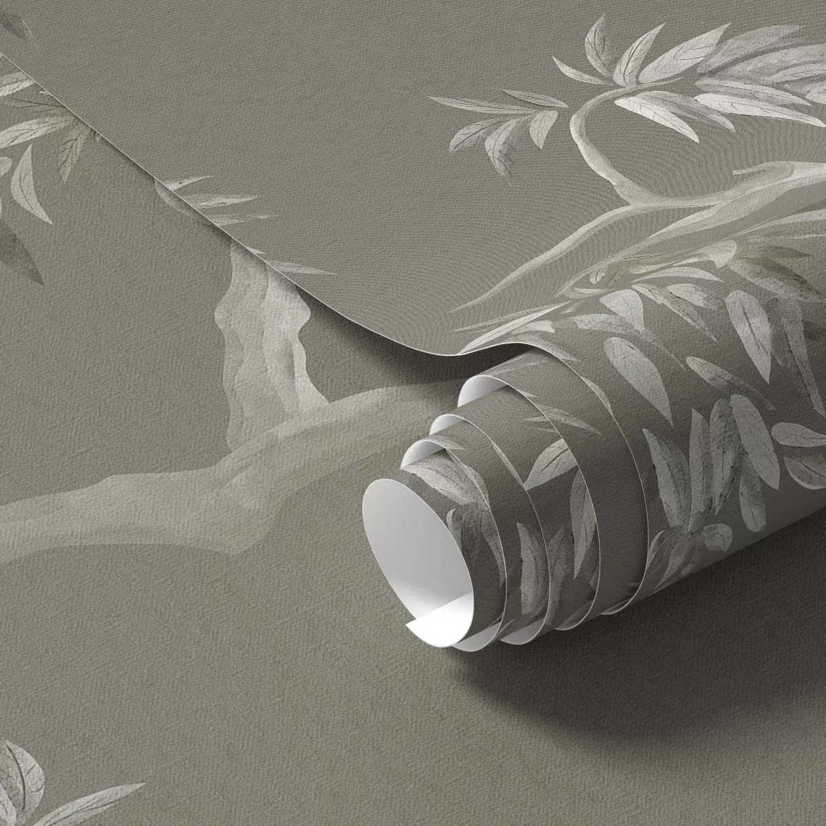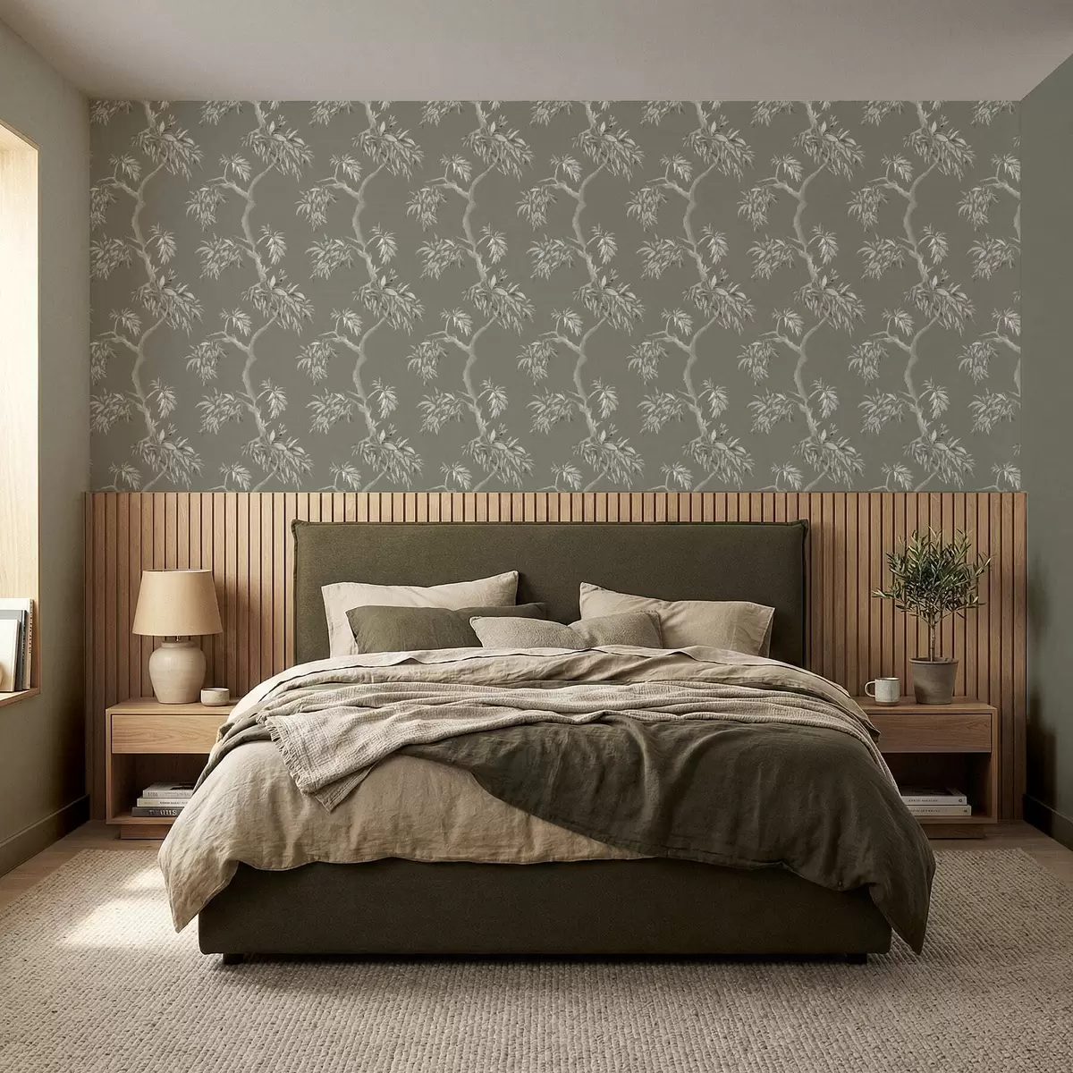 Ταπετσαρία Ελαφρύ κλαδί με φύλλα σε φόντο ελιάς Nr. a01117v1