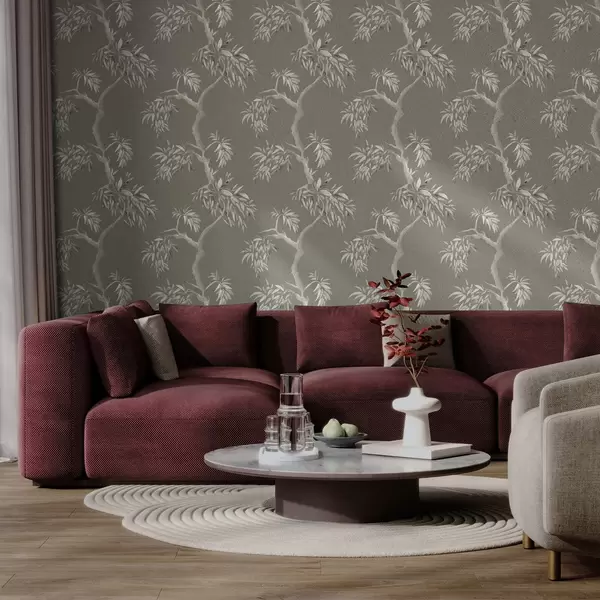 Ταπετσαρία Ελαφρύ κλαδί με φύλλα σε φόντο ελιάς Nr. a01117v1