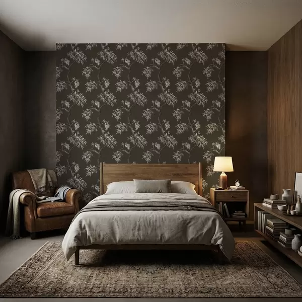 Ταπετσαρία Μονόχρωμο κλαδί με φύλλα σε σκούρο φόντο Nr. a01117v2