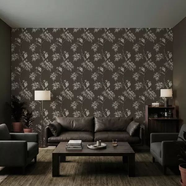 Ταπετσαρία Μονόχρωμο κλαδί με φύλλα σε σκούρο φόντο Nr. a01117v2