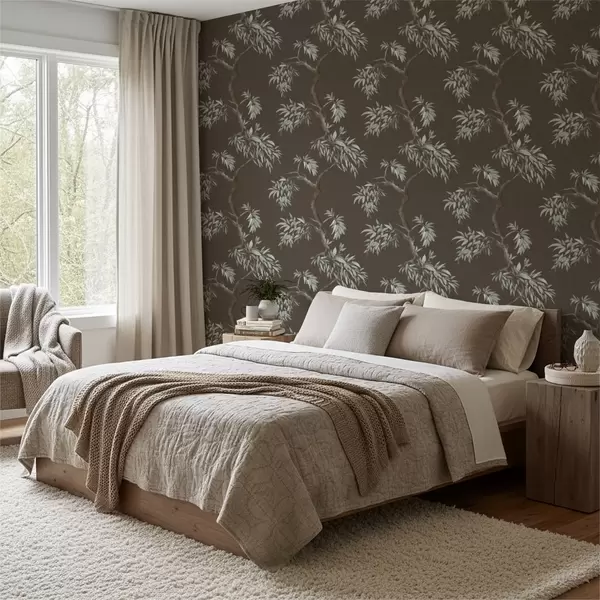 Ταπετσαρία Κλαδί δέντρου με φύλλα σε καφέ φόντο Nr. a01117v3