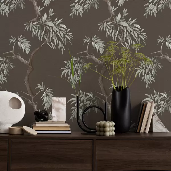 Ταπετσαρία Κλαδί δέντρου με φύλλα σε καφέ φόντο Nr. a01117v3