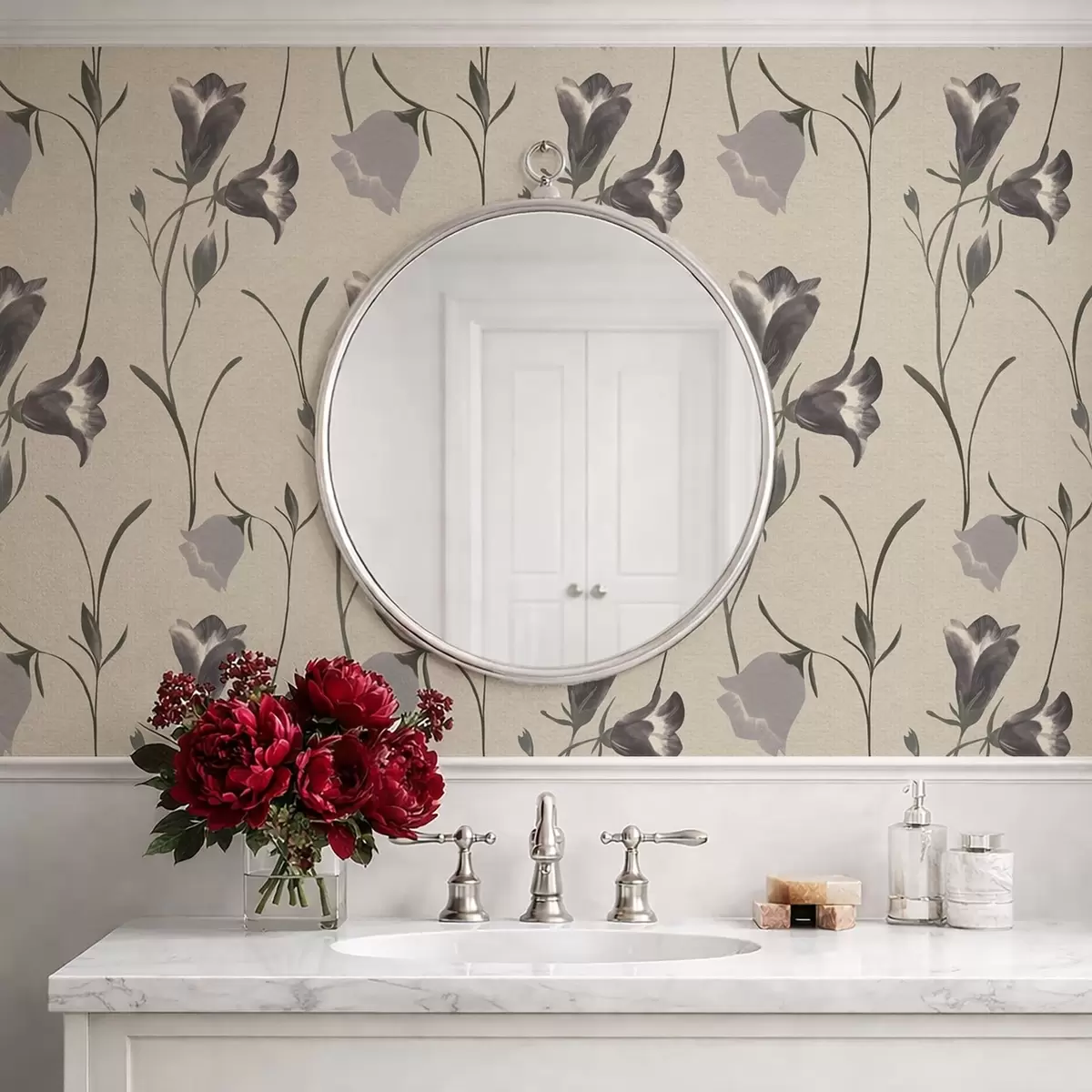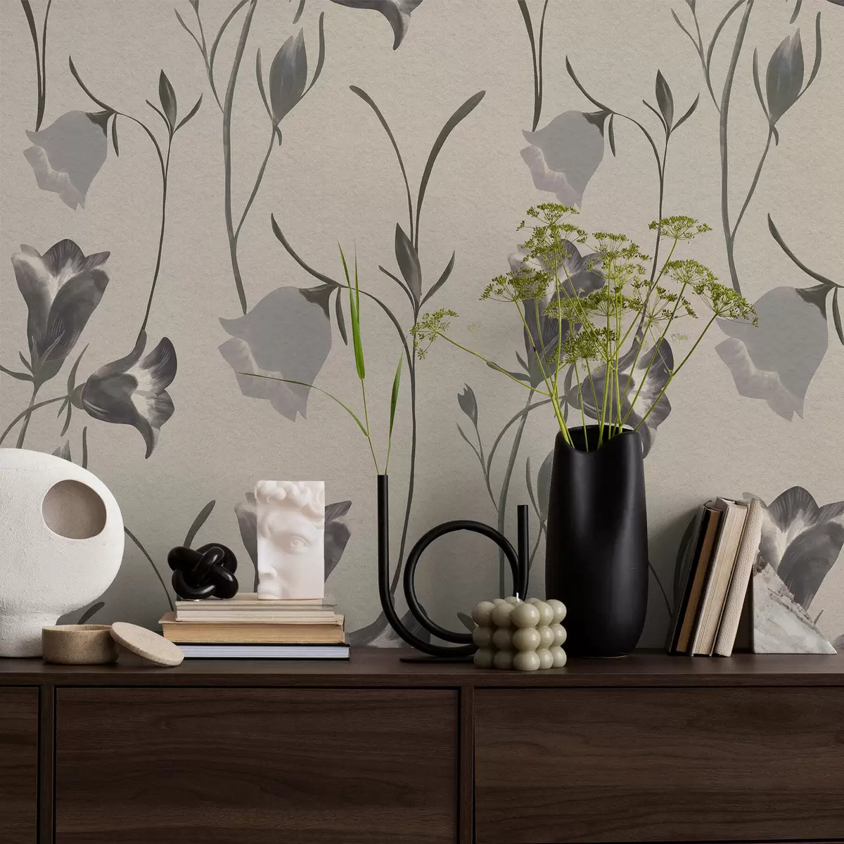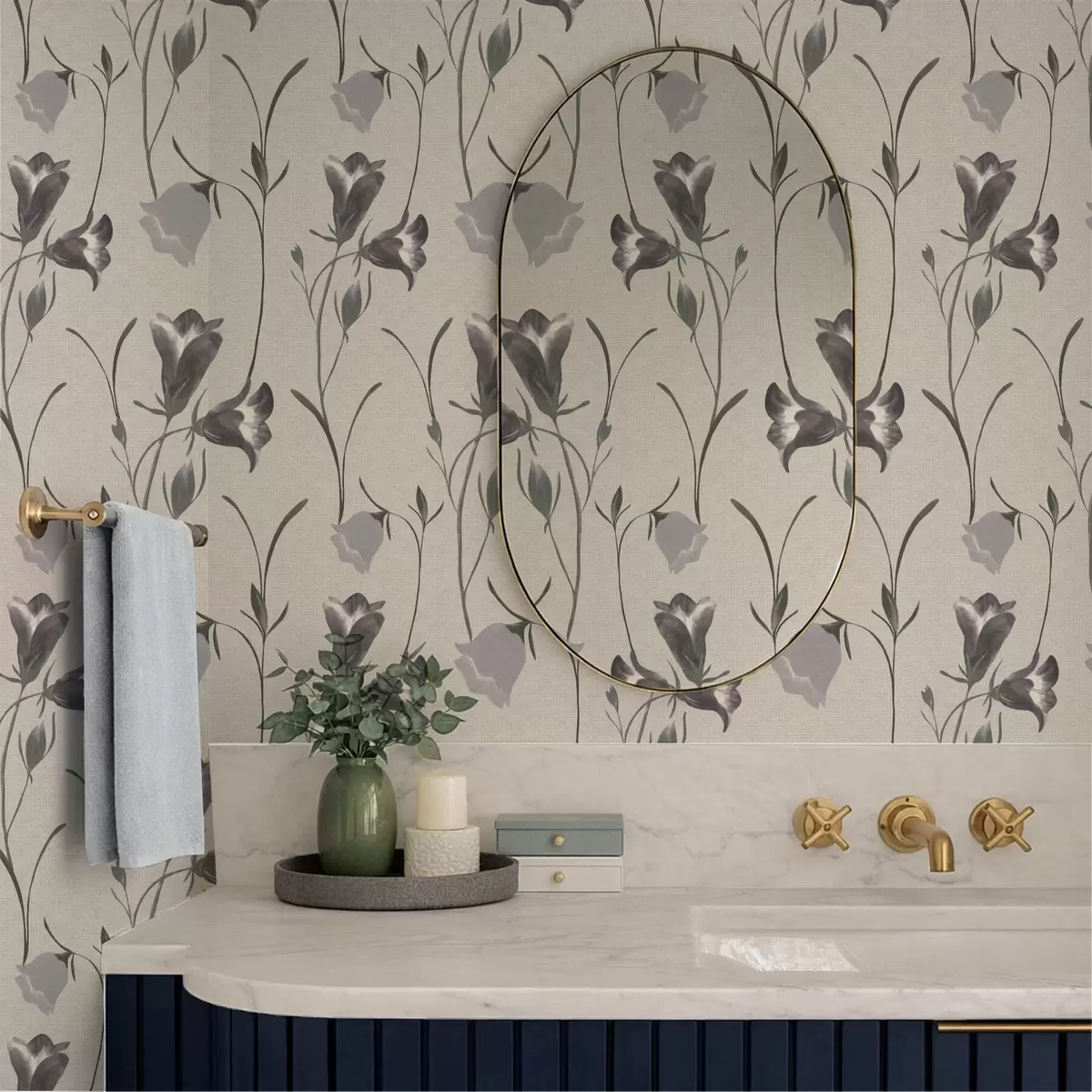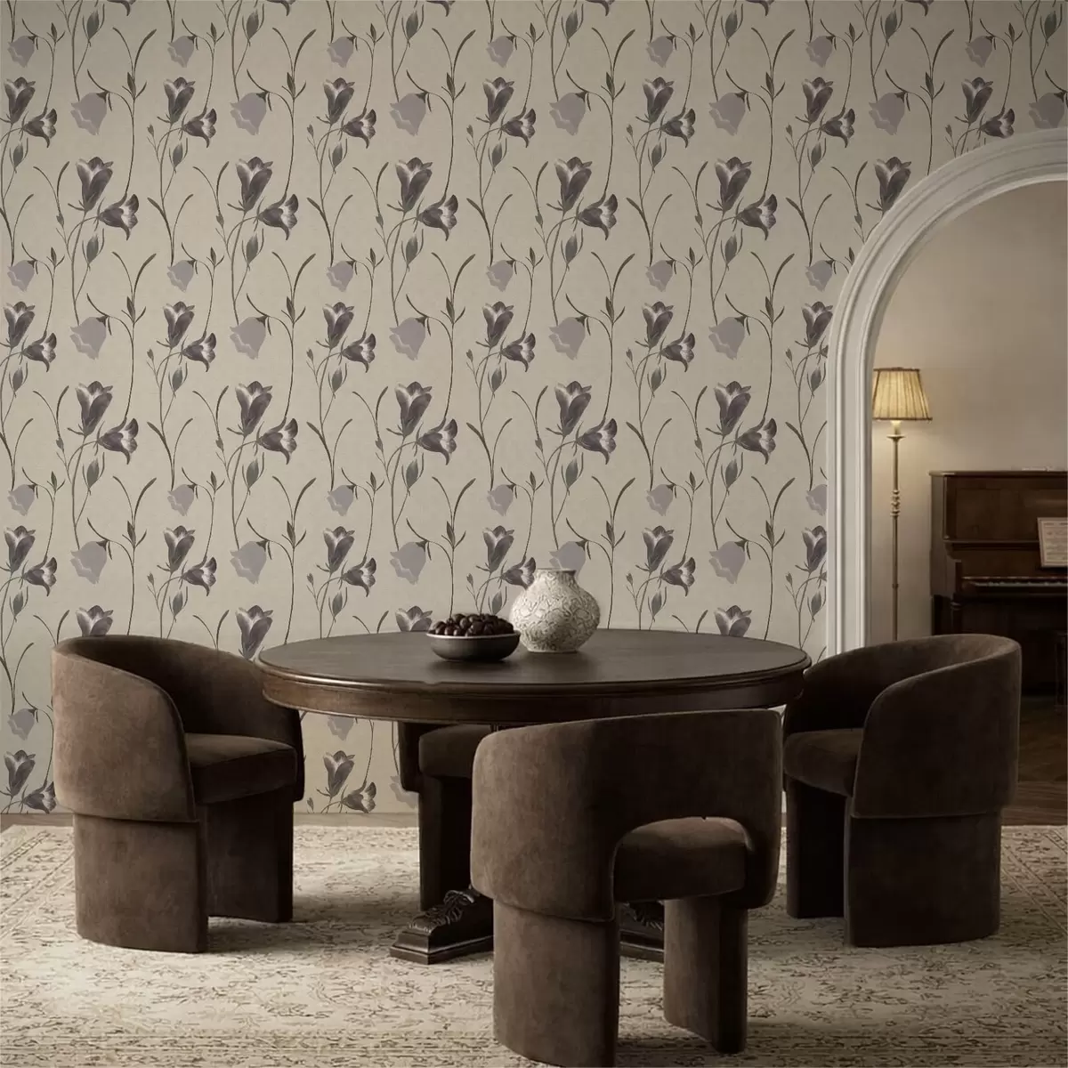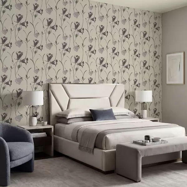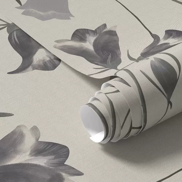 Ταπετσαρία Γκρι καμπανούλες σε ανοιχτό μπεζ φόντο Nr. a01119