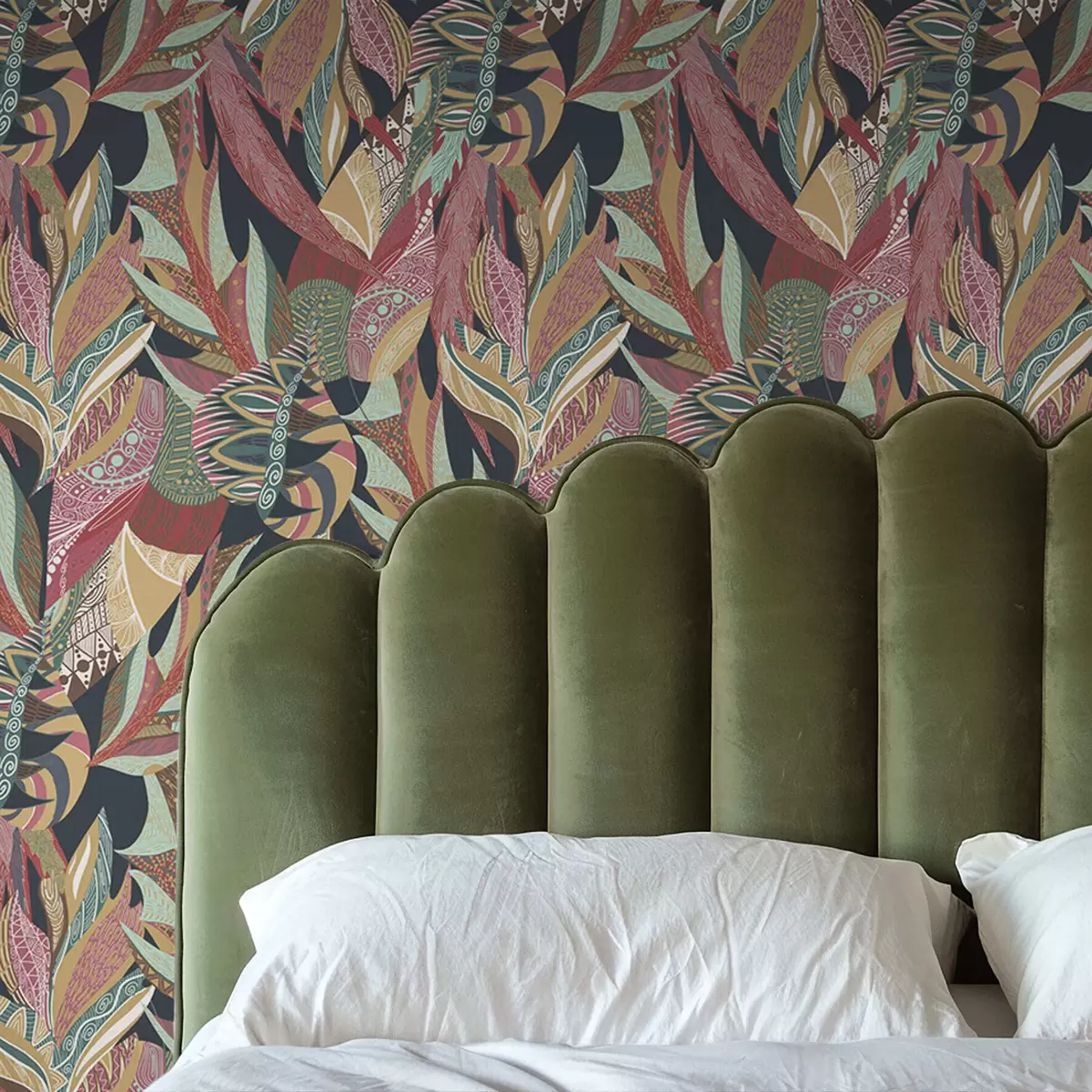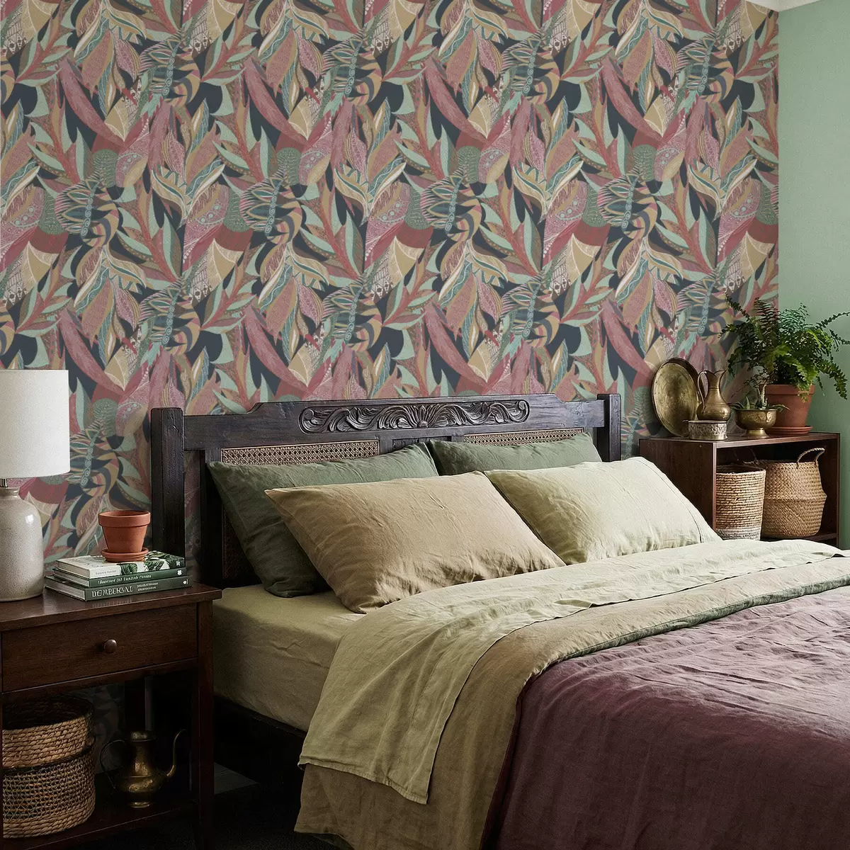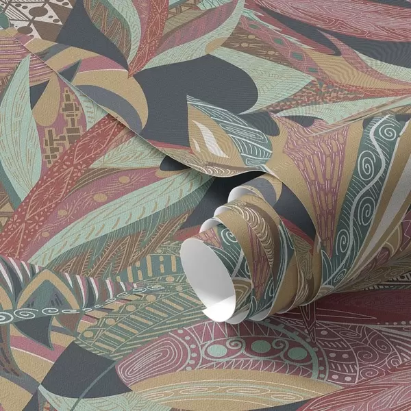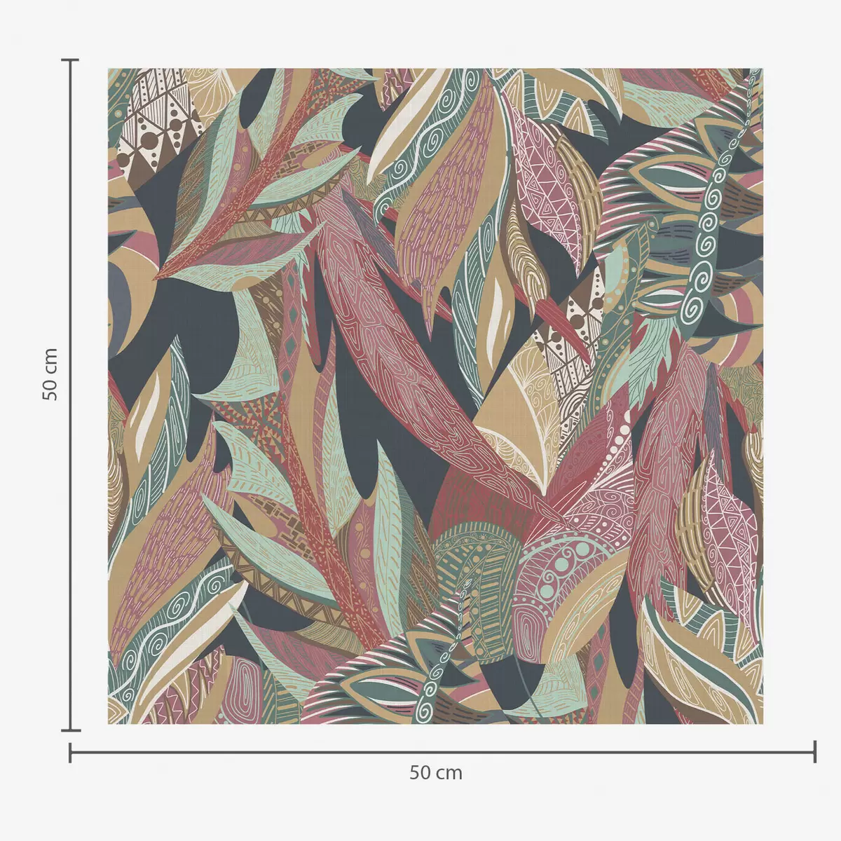 Ταπετσαρία Πολύχρωμα φύλλα με μοτίβα σε σκούρο φόντο Nr. a01120