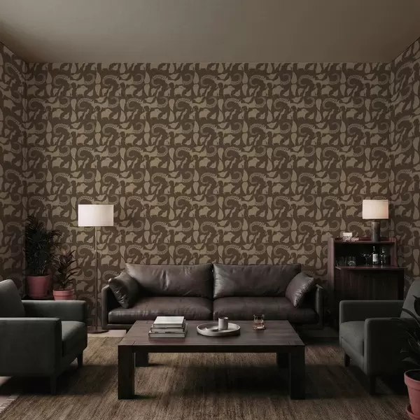 Ταπετσαρία Δασικό μοτίβο με ζώα σε καφέ φόντο Nr. a01121