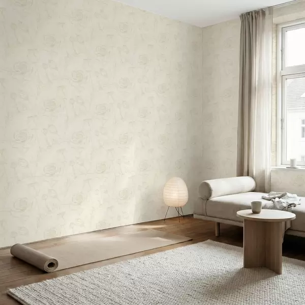 Ταπετσαρία Ανοιχτό ροζ μοτίβο σε μπεζ φόντο Nr. a01124