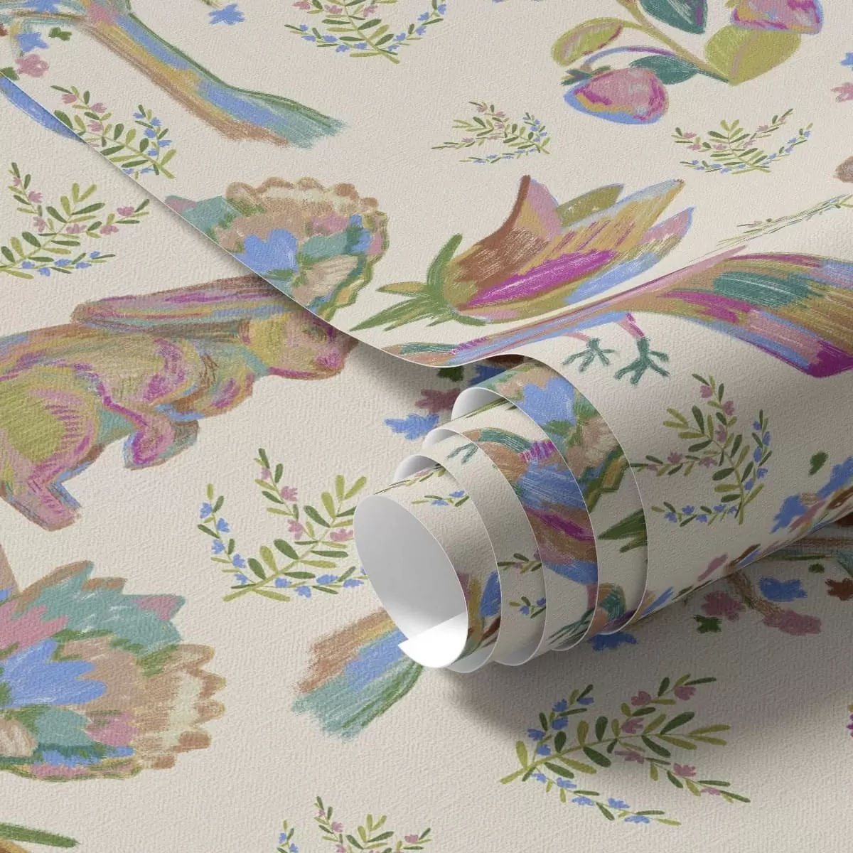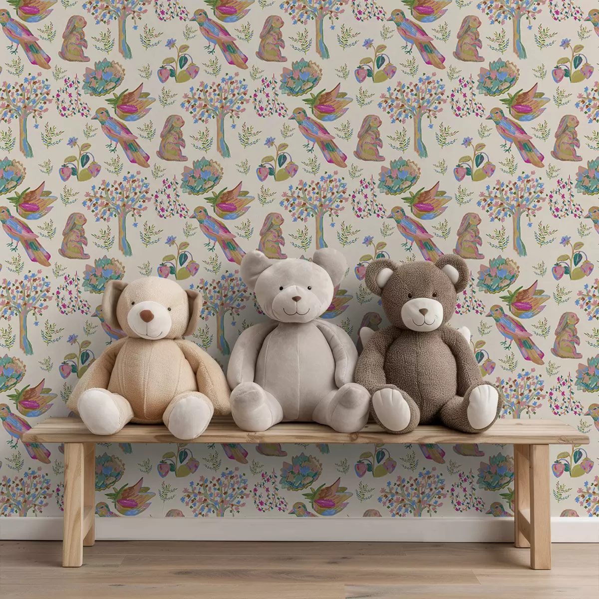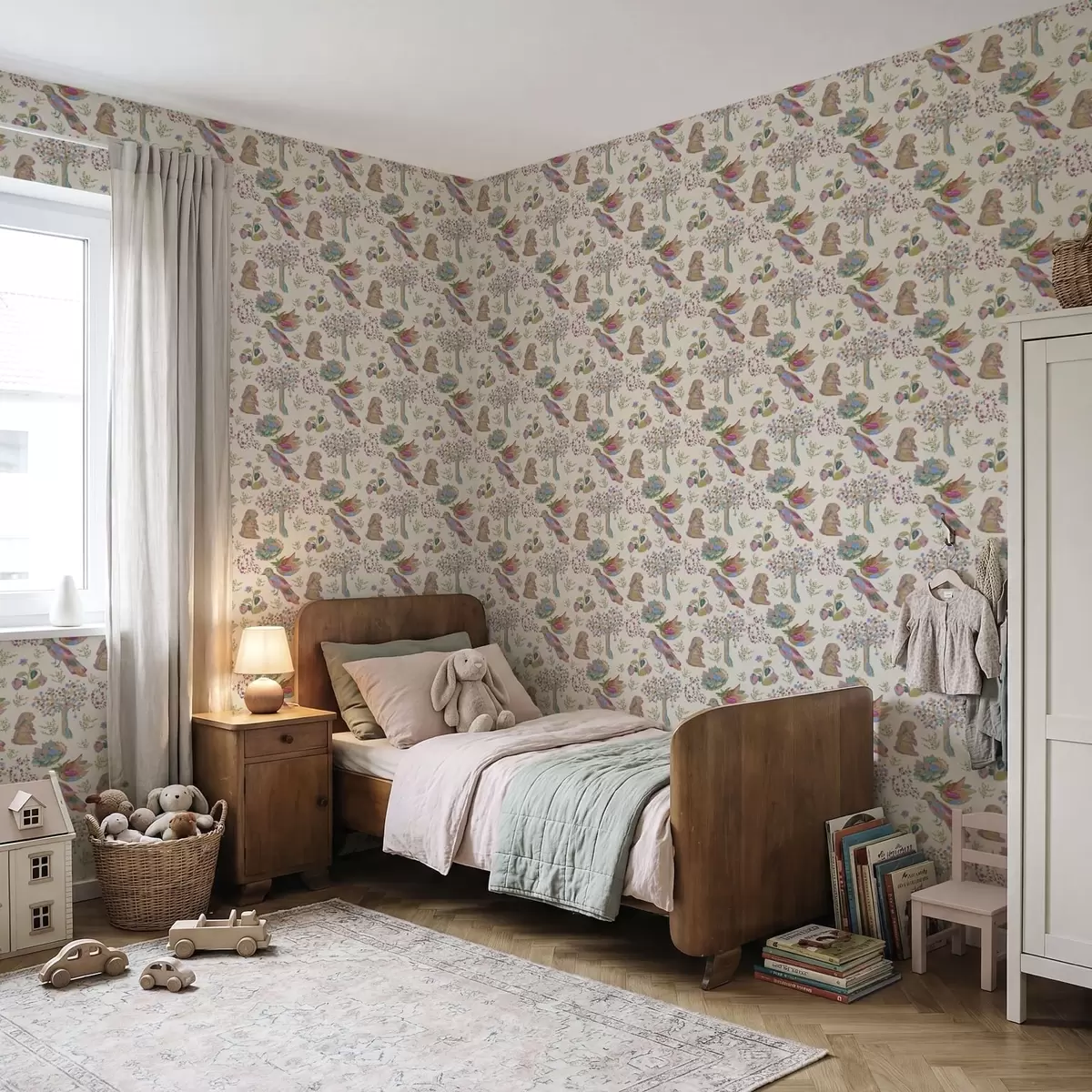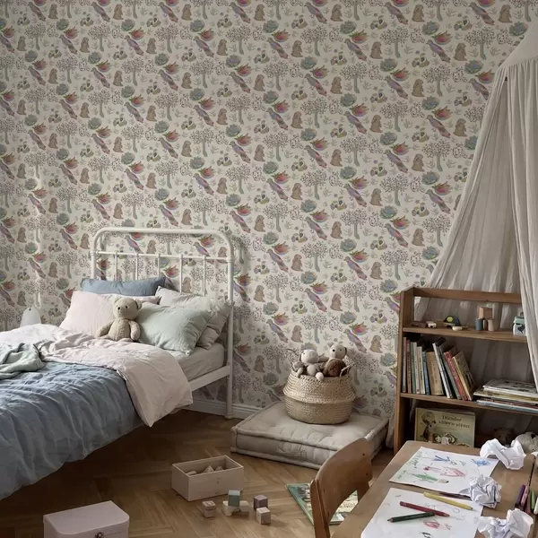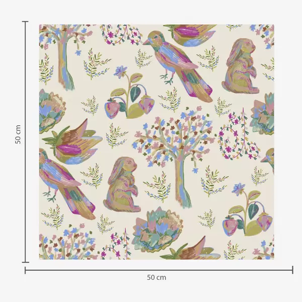 Ταπετσαρία Πολύχρωμο παιδικό μοτίβο με πουλιά και κουνέλια Nr. a01127
