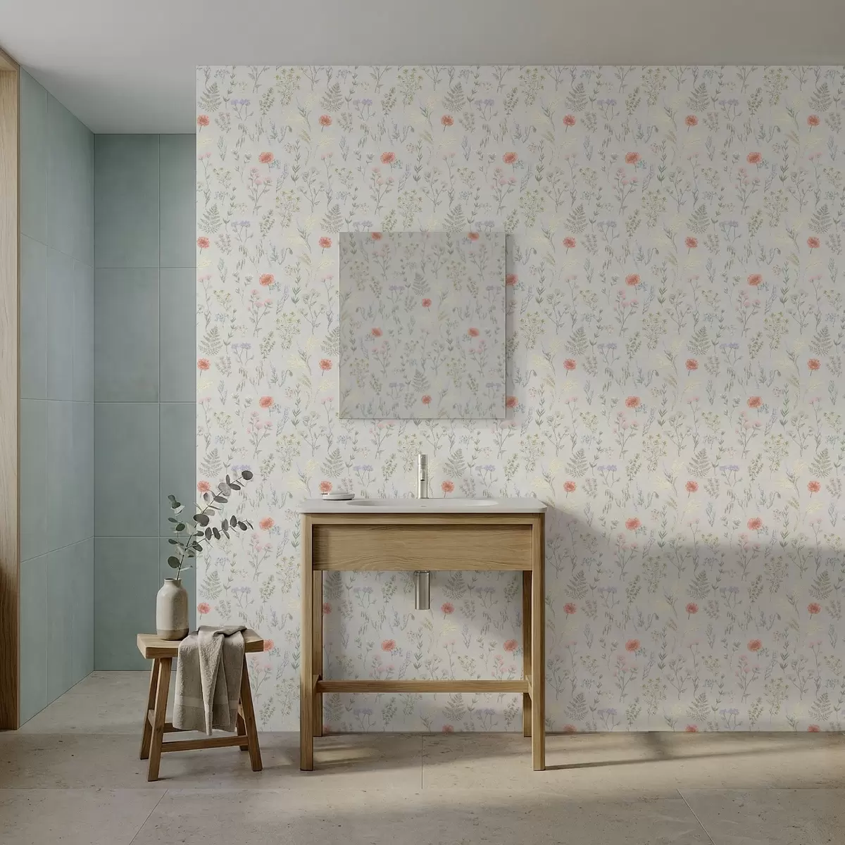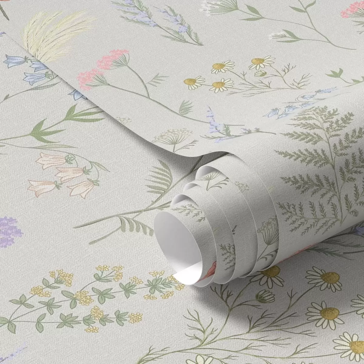 Ταπετσαρία Λεπτό μοτίβο με αγριολούλουδα σε ανοιχτόχρωμο φόντο Nr. a01152