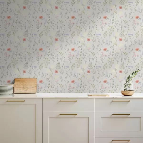 Ταπετσαρία Λεπτό μοτίβο με αγριολούλουδα σε ανοιχτόχρωμο φόντο Nr. a01152