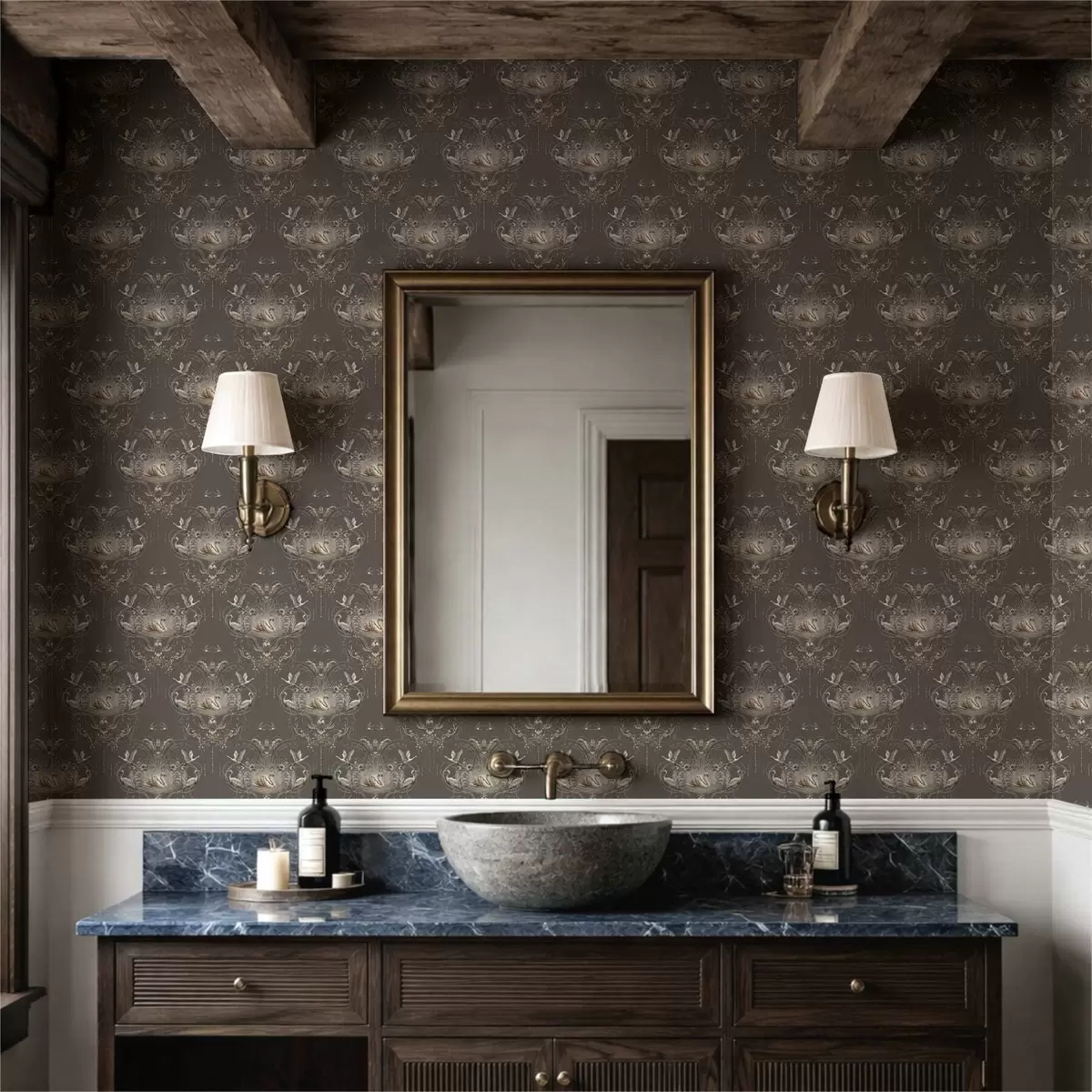 Ταπετσαρία Διακοσμητικό με κύκνους και πουλιά σε κλασικό στιλ Nr. a01161