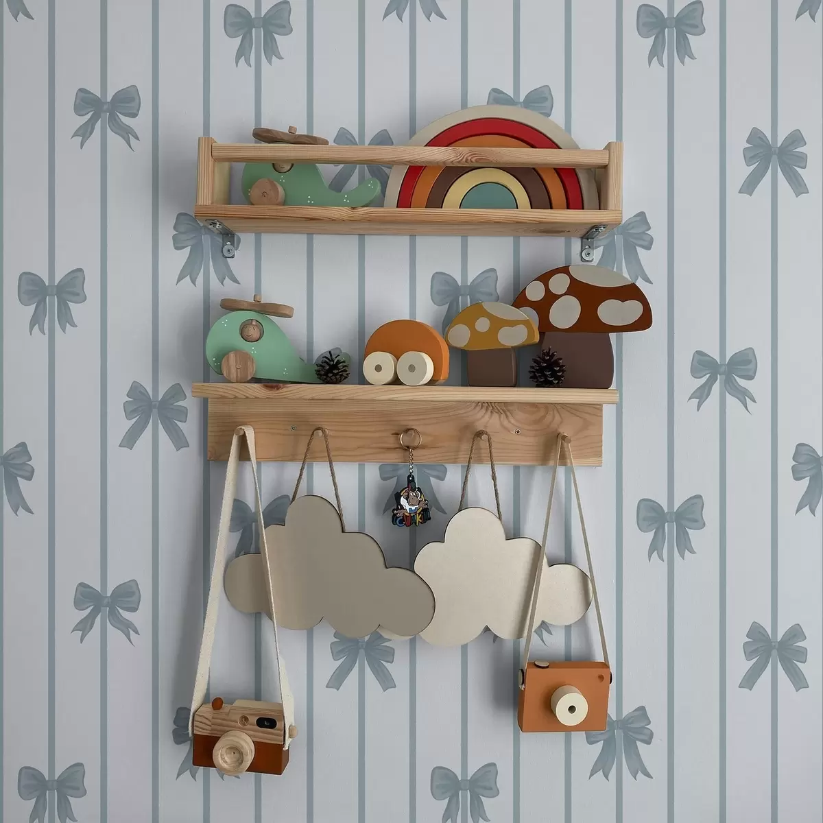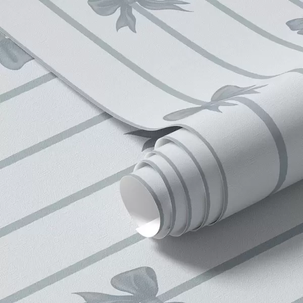 Ταπετσαρία Μπλε φιόγκοι σε ριγέ ανοιχτόχρωμο φόντο Nr. a01162v2