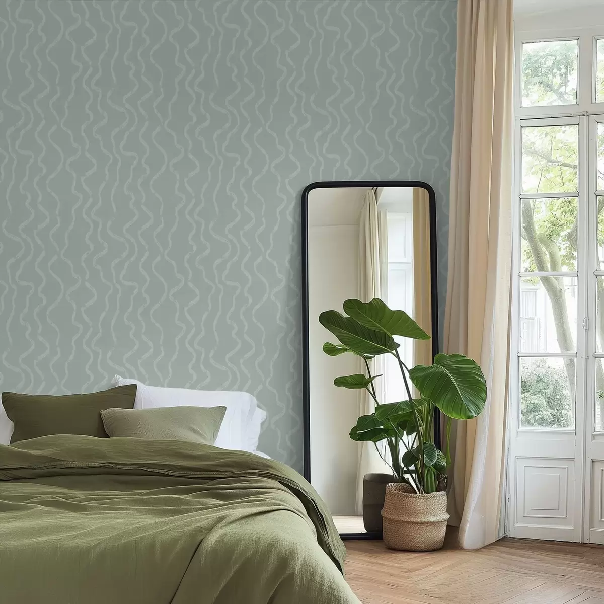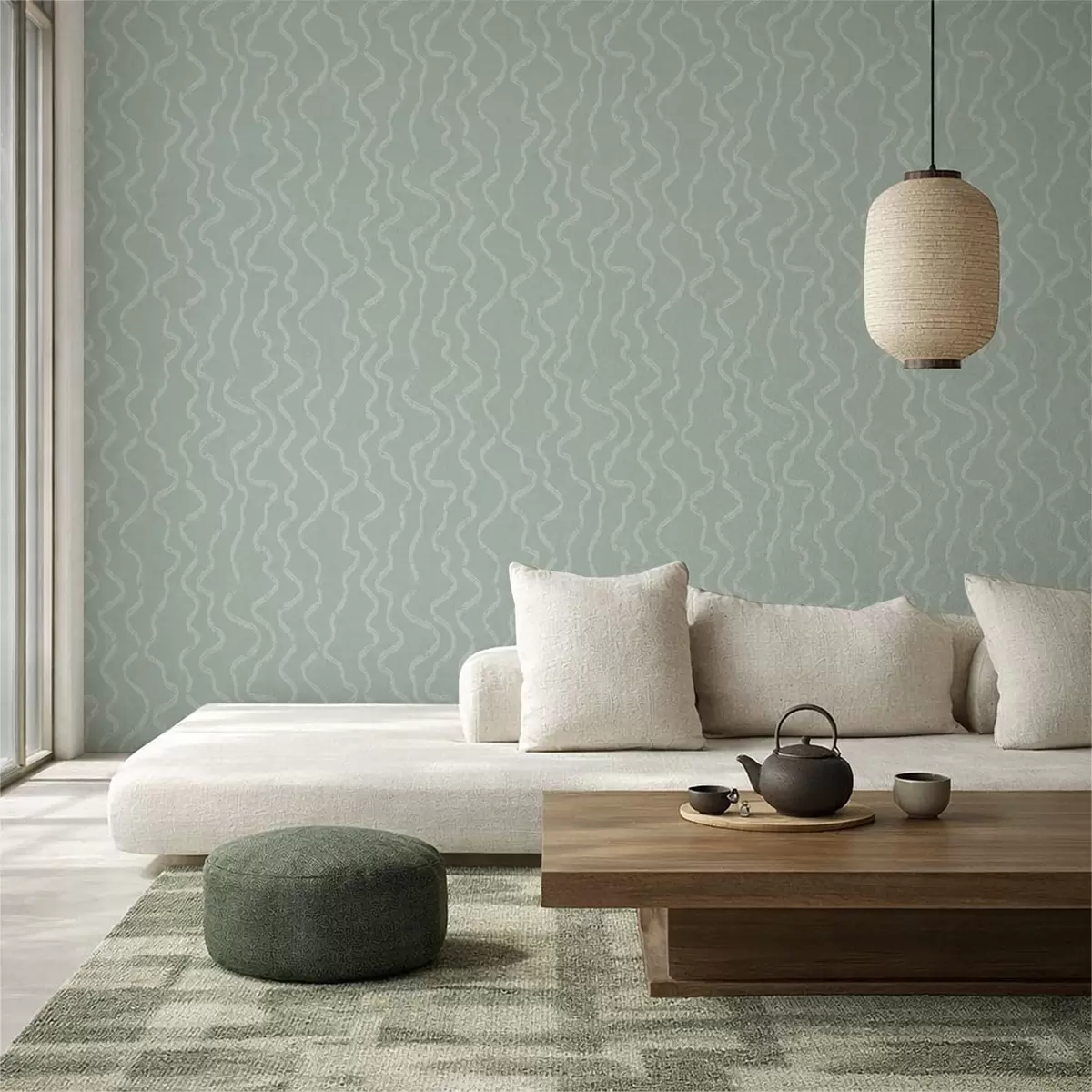 Ταπετσαρία Κυματιστό μοτίβο φωτός σε πράσινο φόντο Nr. a01167v2