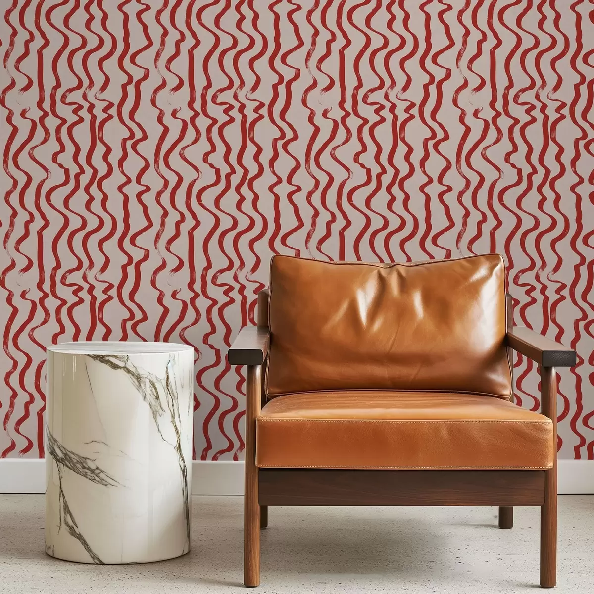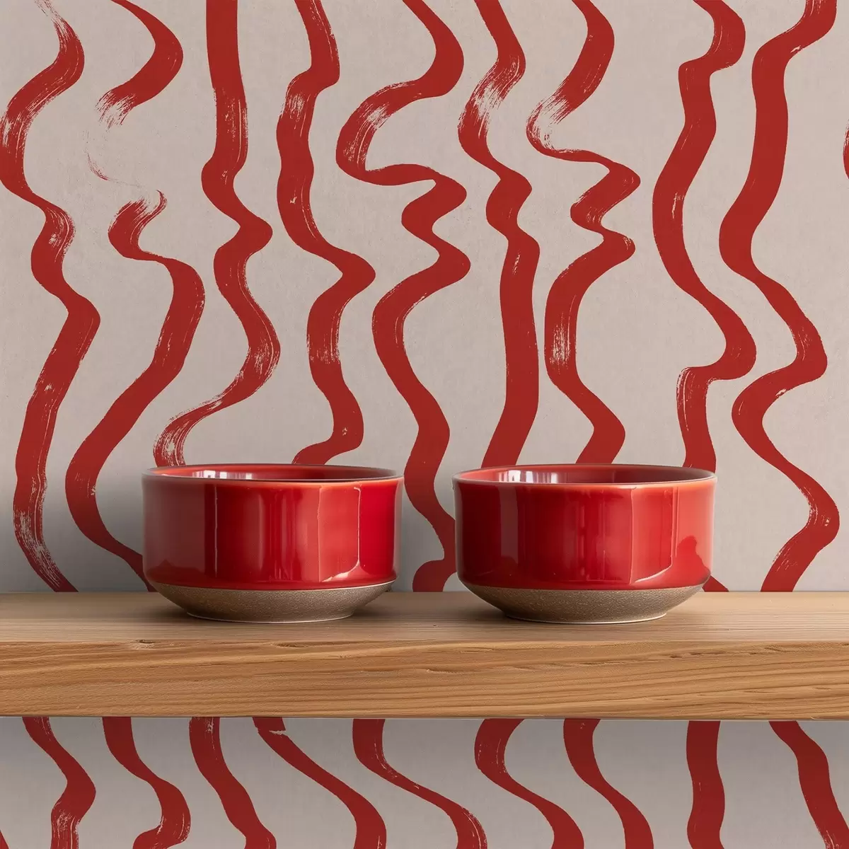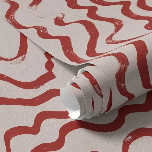 Ταπετσαρία Κόκκινες κυματιστές γραμμές σε ανοιχτόχρωμο φόντο Nr. a01168