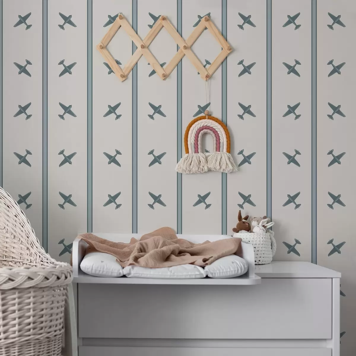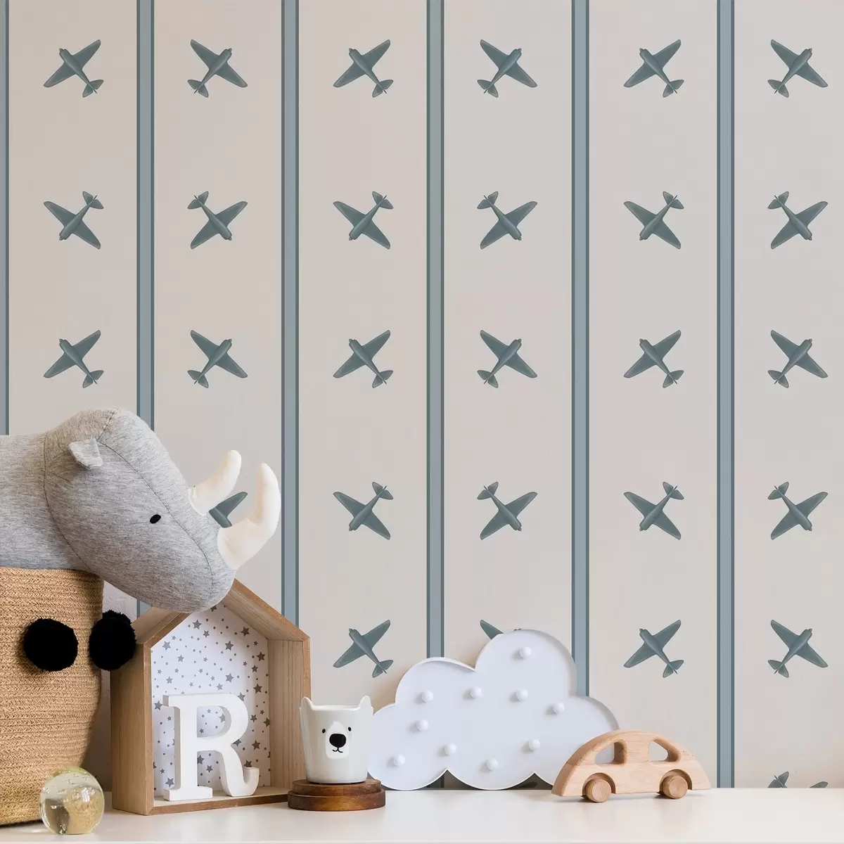 Ταπετσαρία Αεροπλάνα με ριγέ μοτίβο και μπλε ρίγες Nr. a01170