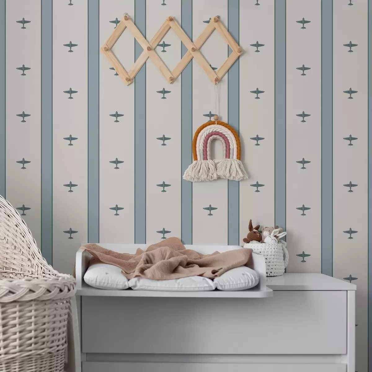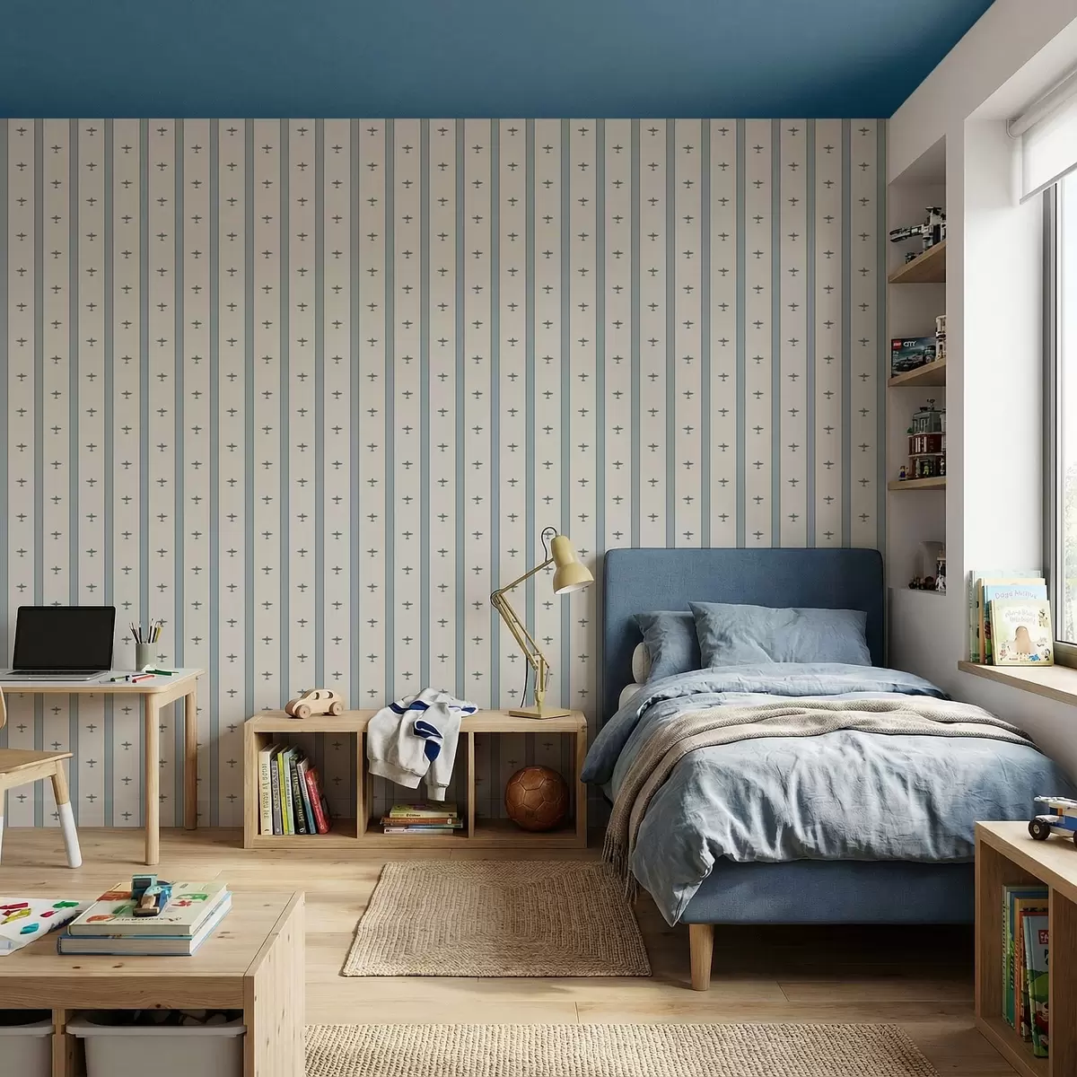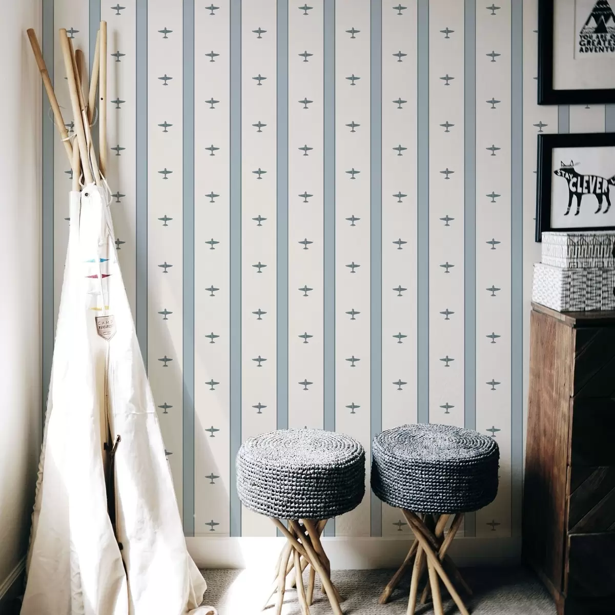 Ταπετσαρία Μικρά αεροπλάνα με ρίγες σε μπλε φόντο Nr. a01171