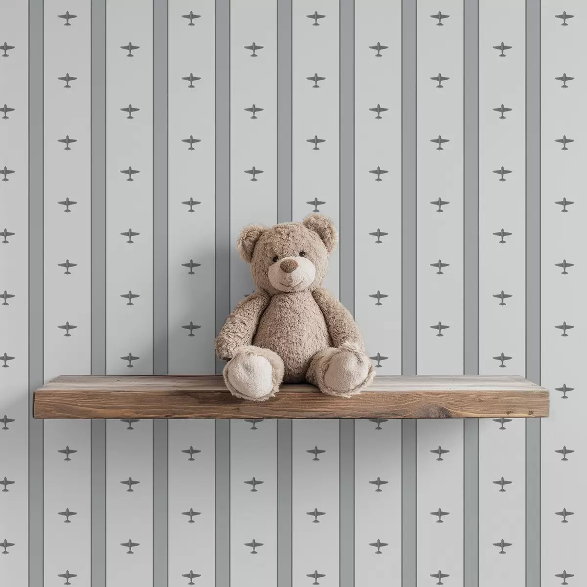 Ταπετσαρία Μικρά αεροπλάνα με ρίγες σε γκρι φόντο Nr. a01171v1