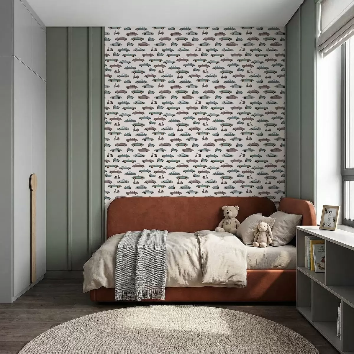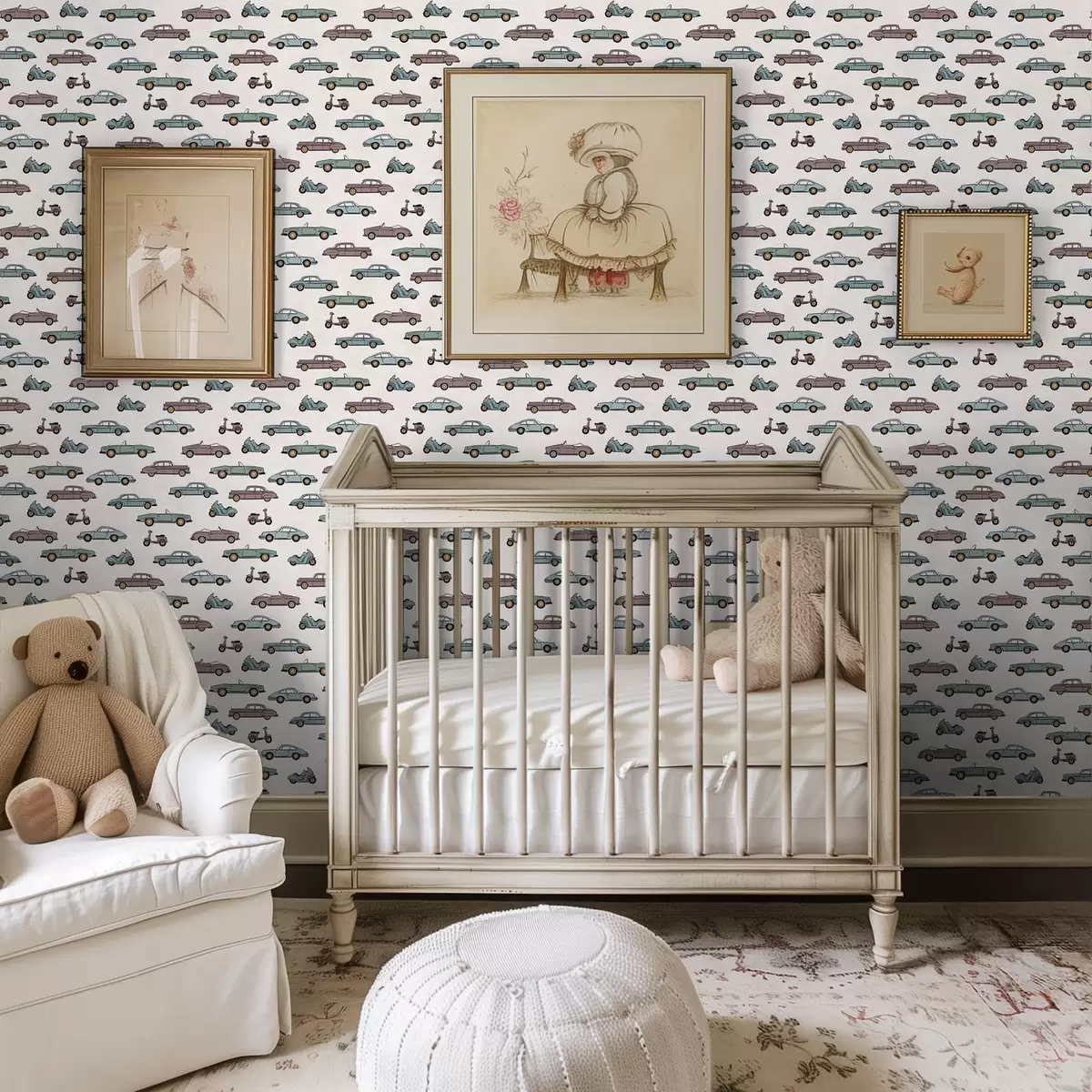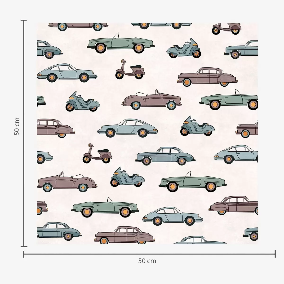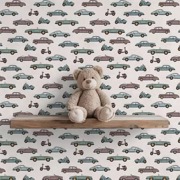 Ταπετσαρία Ρετρό αυτοκίνητα και σκούτερ σε ανοιχτόχρωμο φόντο Nr. a01172