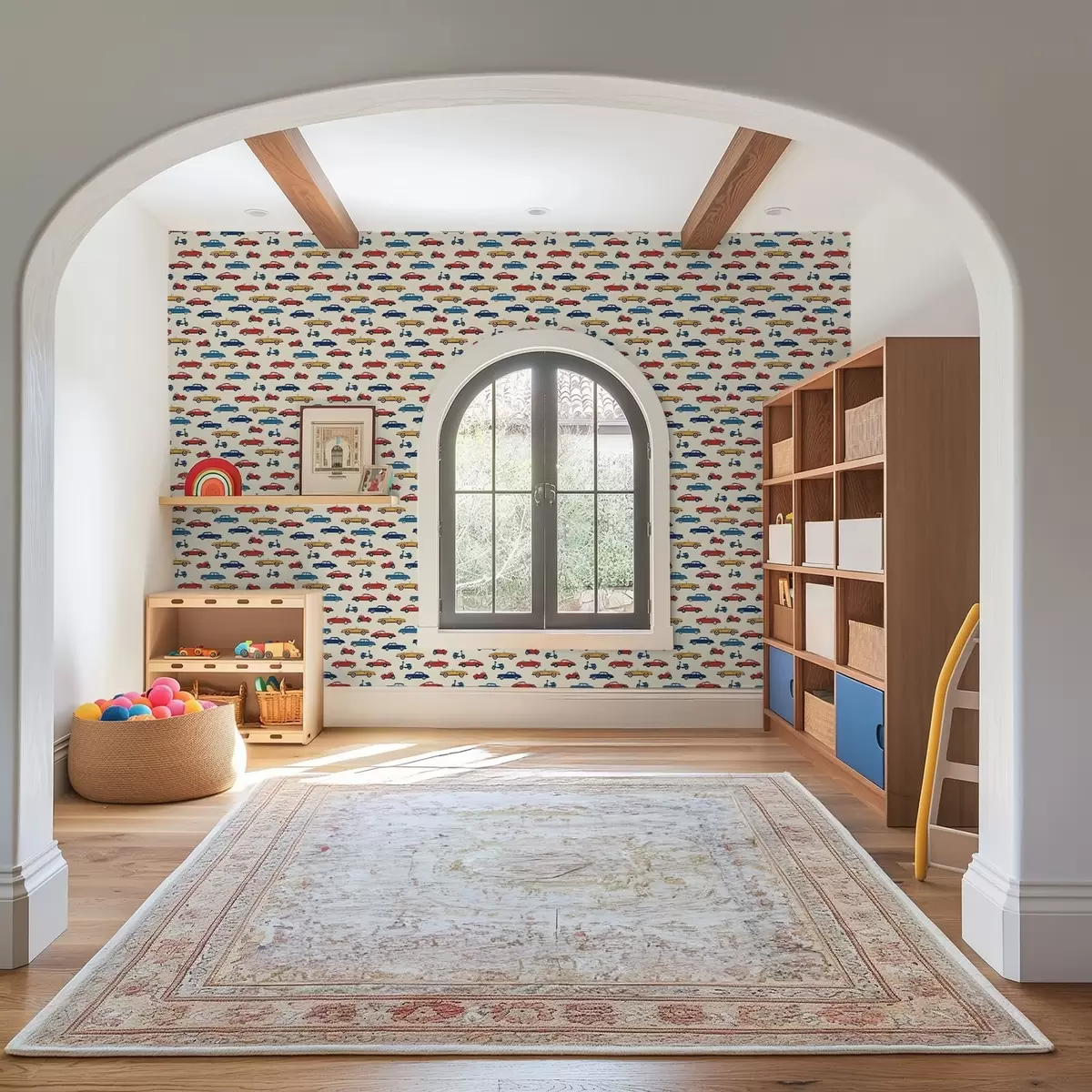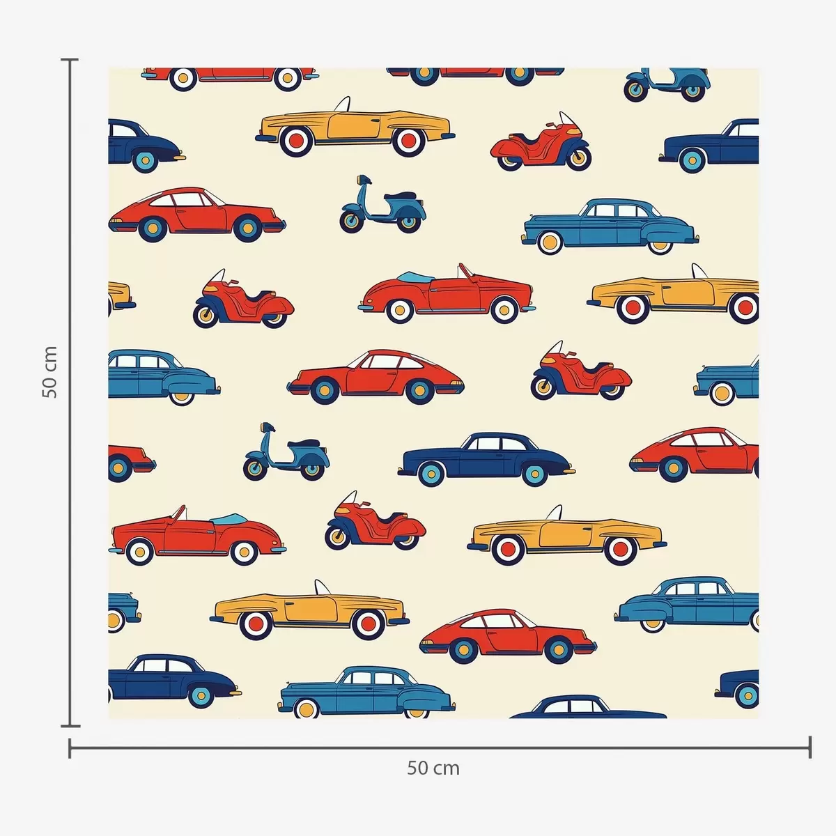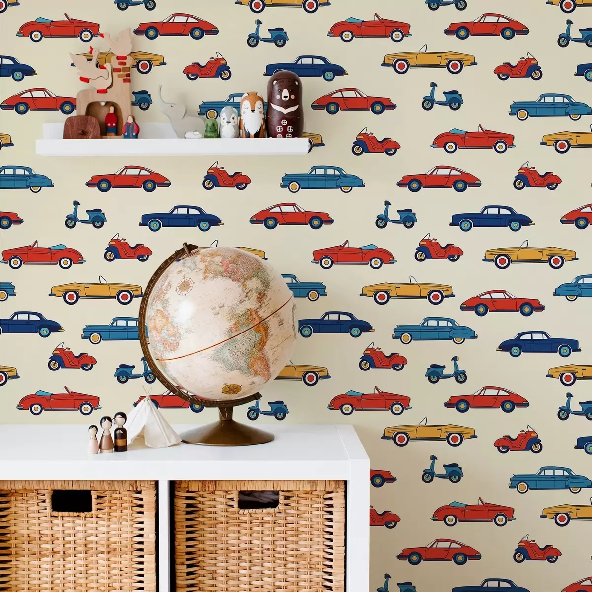 Ταπετσαρία Φωτεινά ρετρό αυτοκίνητα και σκούτερ σε ανοιχτόχρωμο φόντο Nr. a01172v1