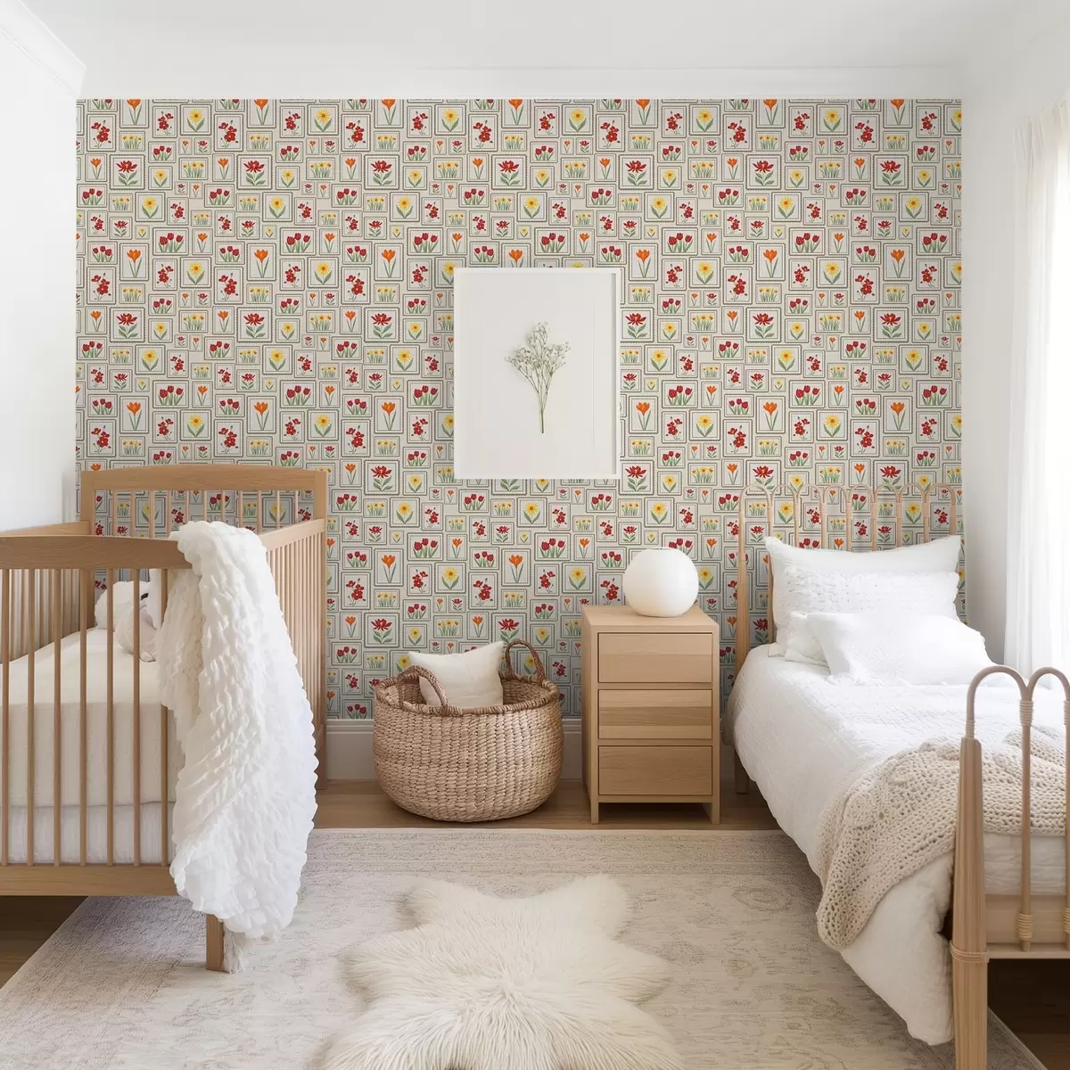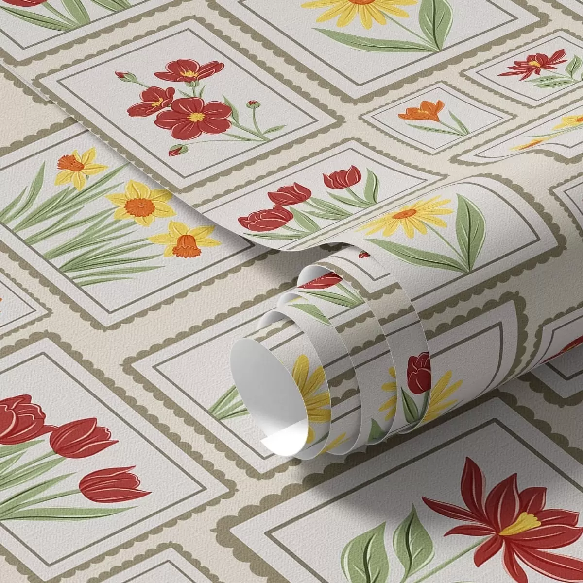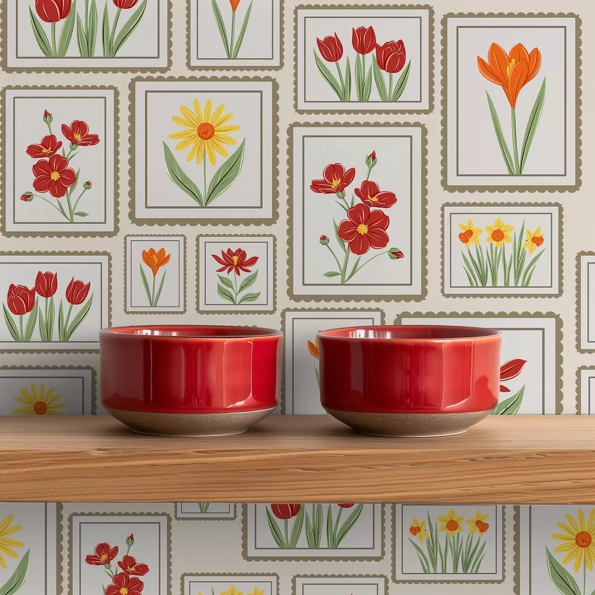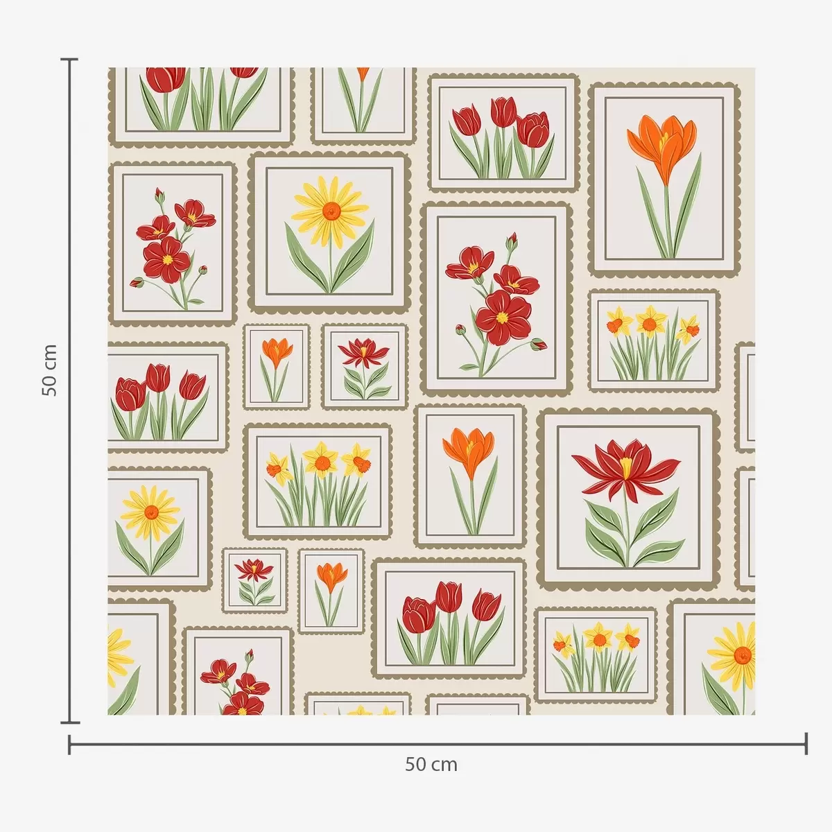 Ταπετσαρία Εικονογραφήσεις λουλουδιών σε κορνίζες, σε ζεστούς χρωματικούς τόνους Nr. a01173