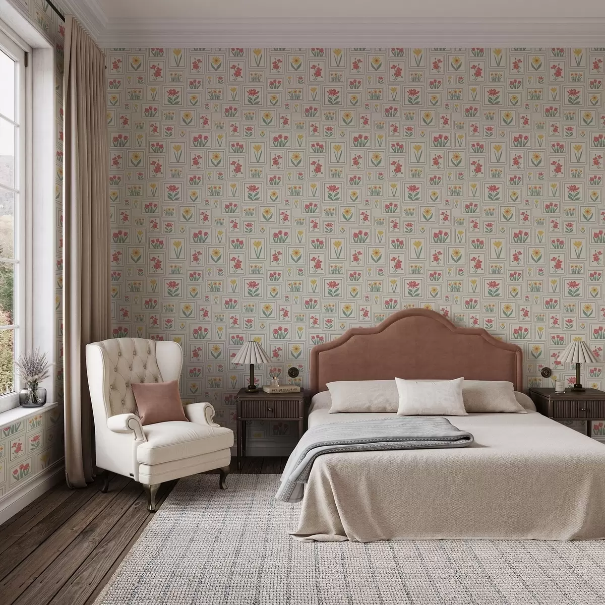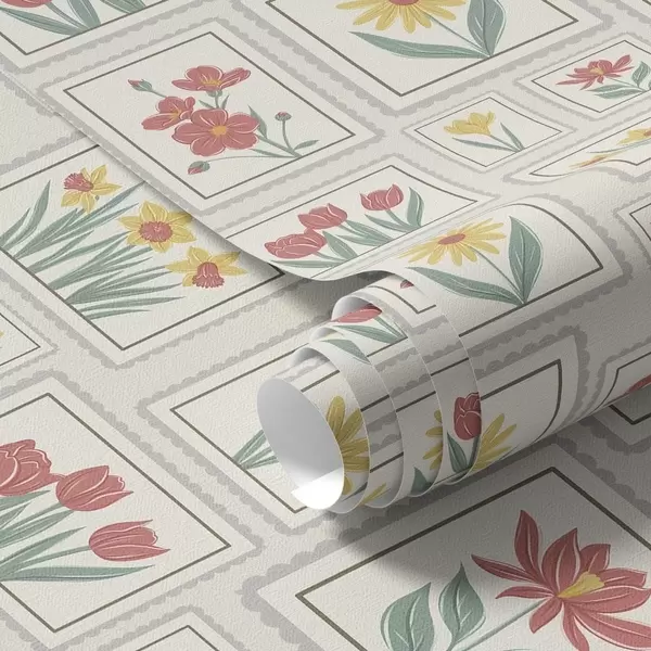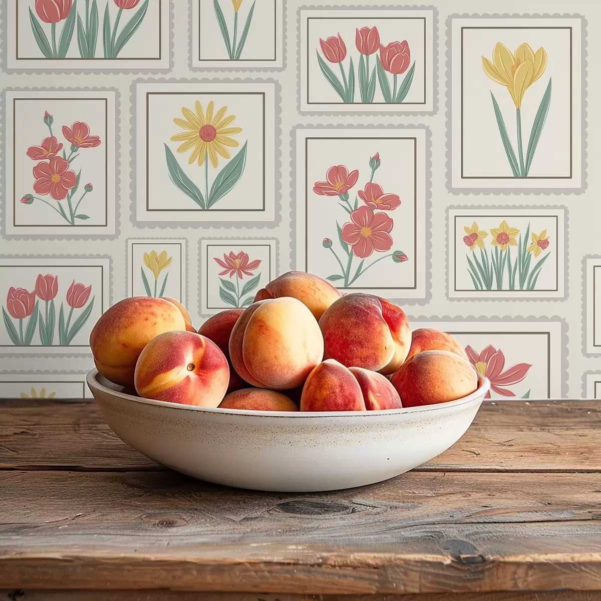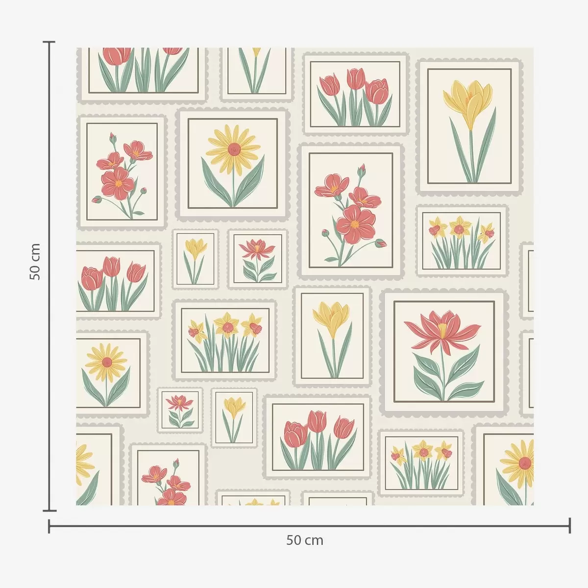 Ταπετσαρία Εικονογραφήσεις λουλουδιών σε κορνίζα με ανοιχτόχρωμο φόντο Nr. a01173v1