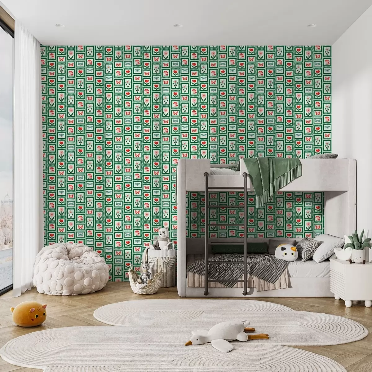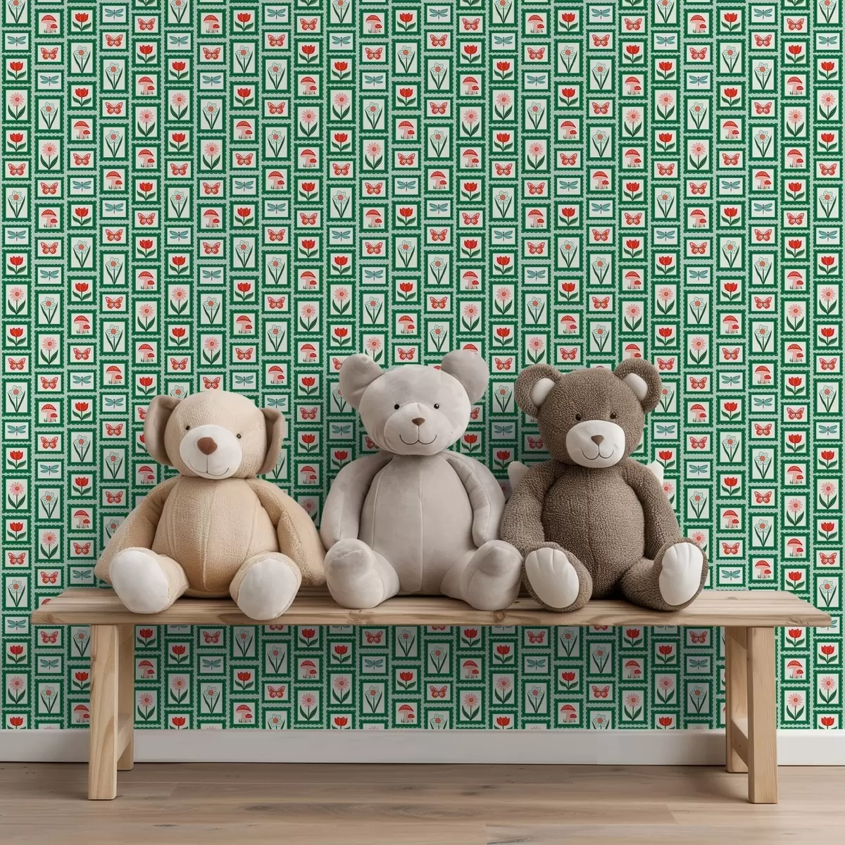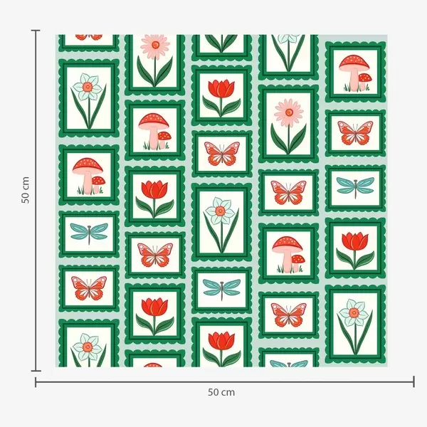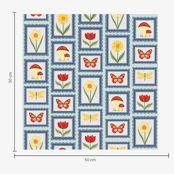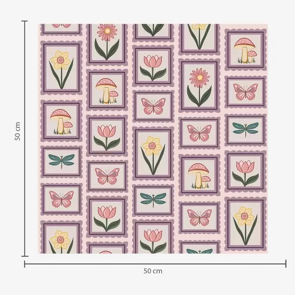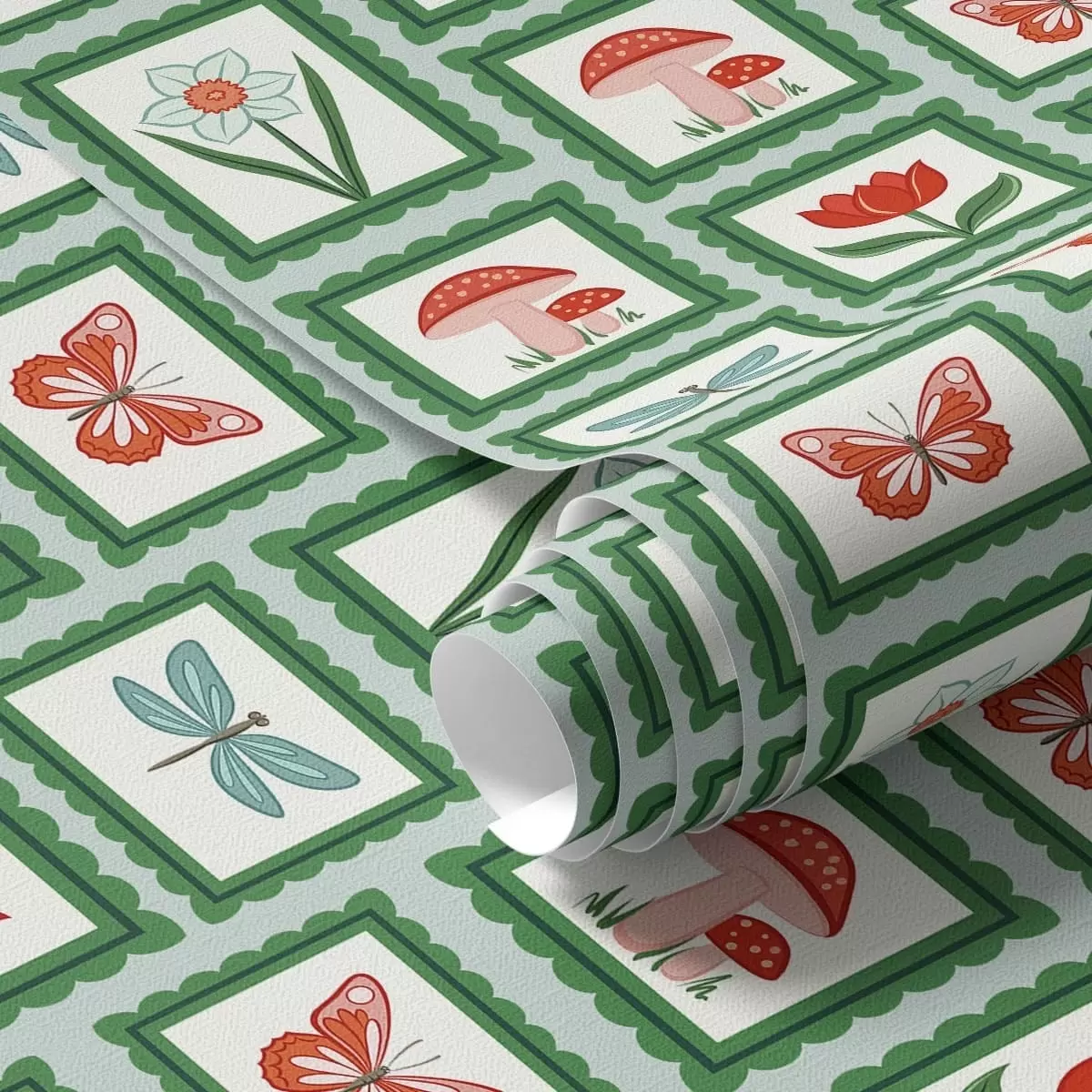 Ταπετσαρία Λουλούδια, μανιτάρια και πεταλούδες σε κορνίζα Nr. a01175