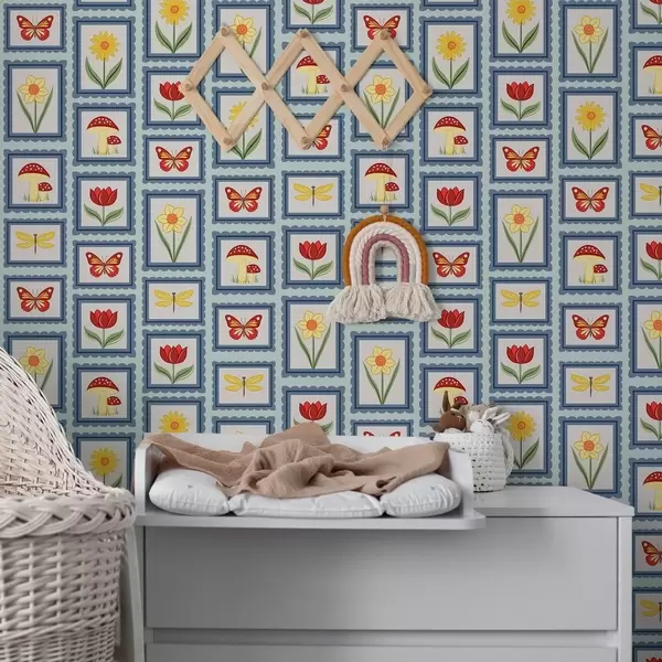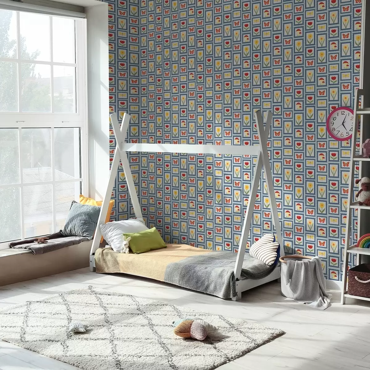 Ταπετσαρία Εικονογραφήσεις σε κορνίζα σε αποχρώσεις του μπλε Nr. a01175v2