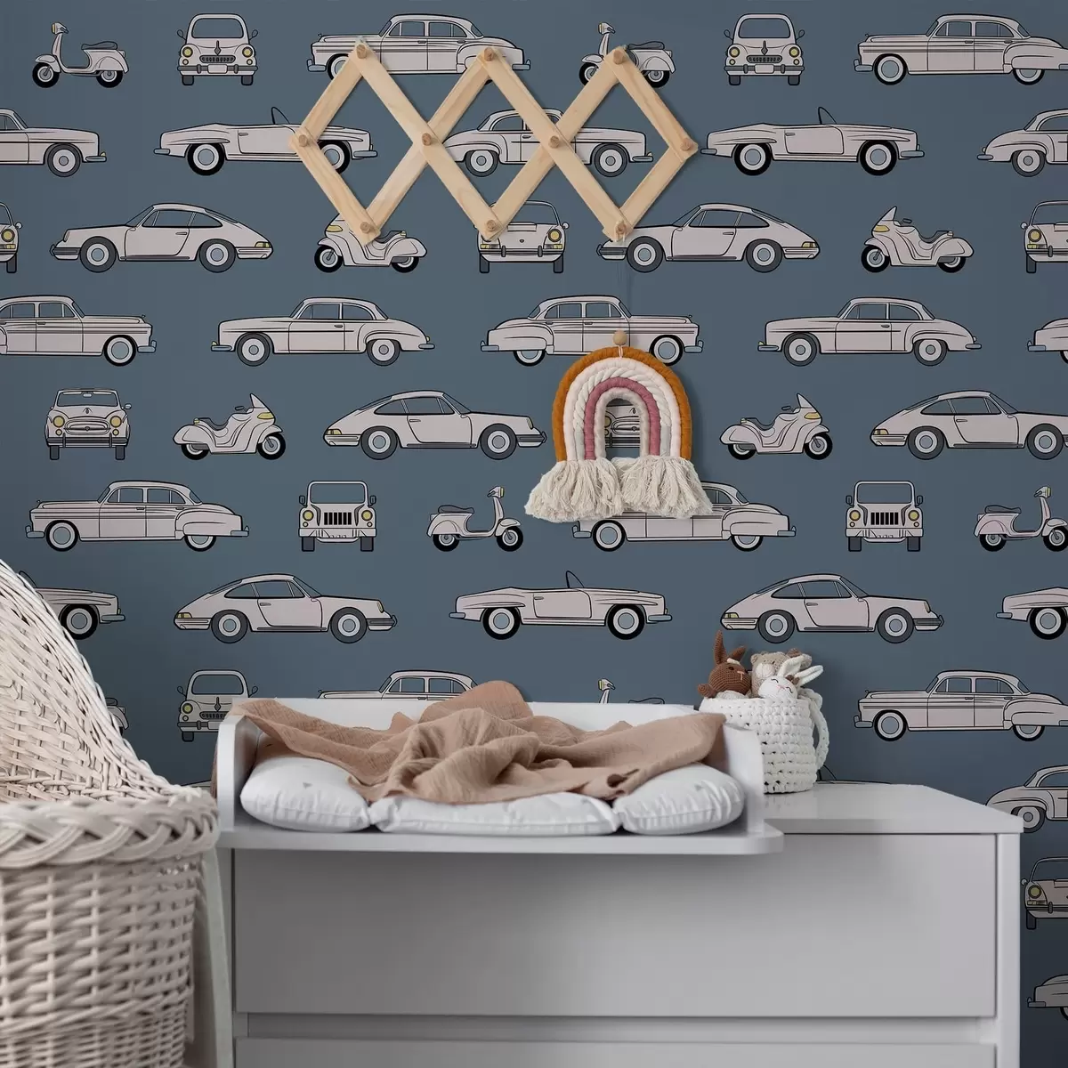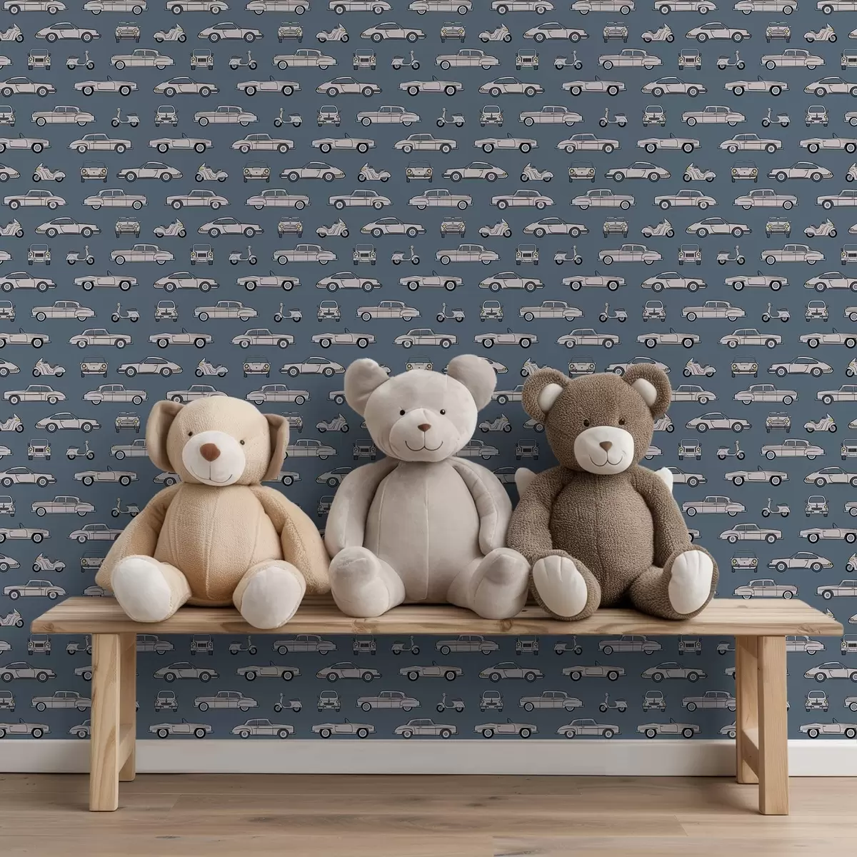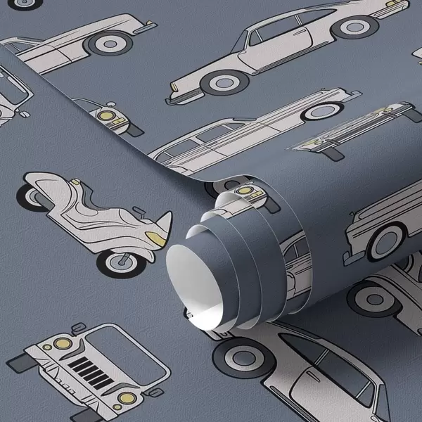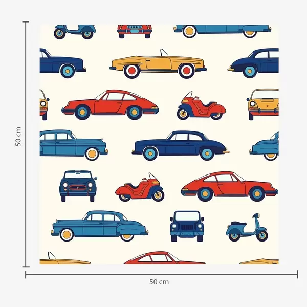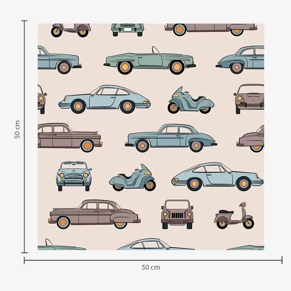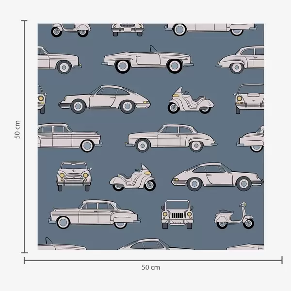 Ταπετσαρία Ρετρό αυτοκίνητα και σκούτερ σε μπλε φόντο Nr. a01178