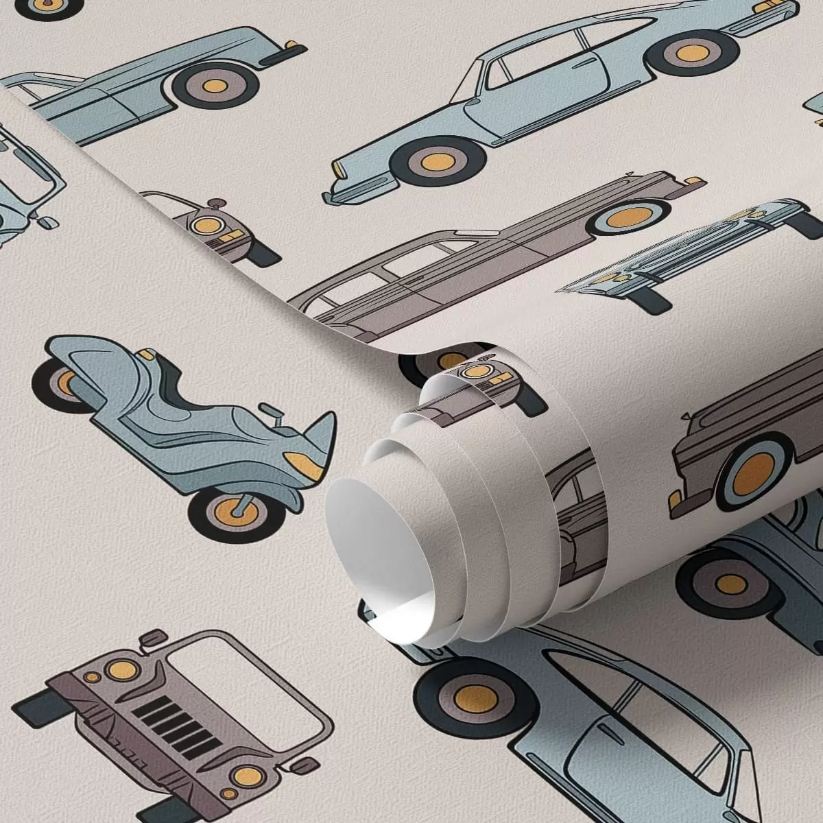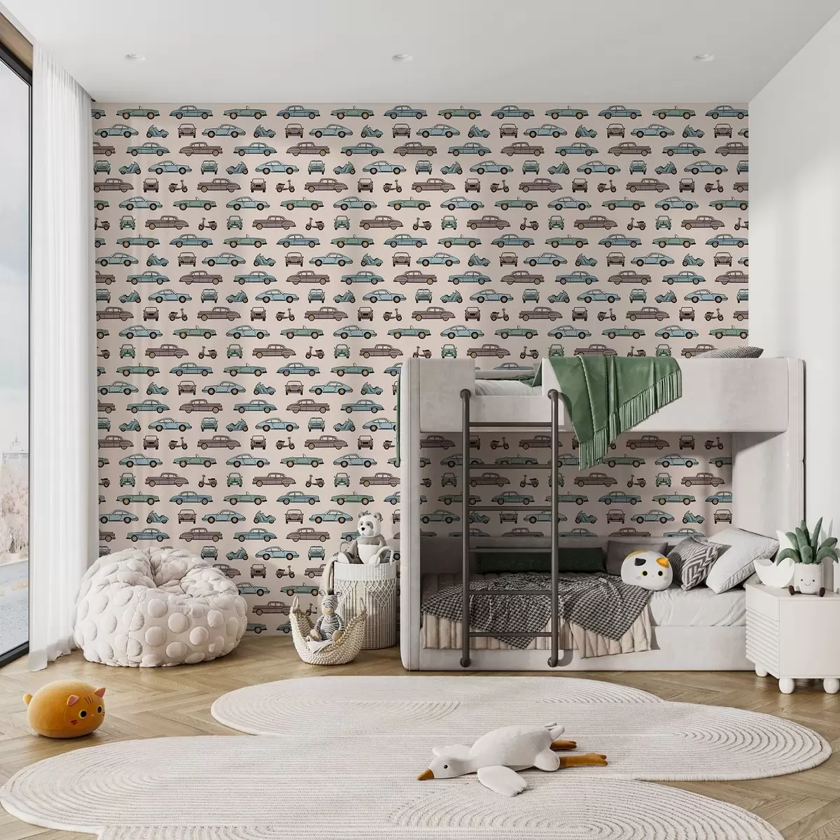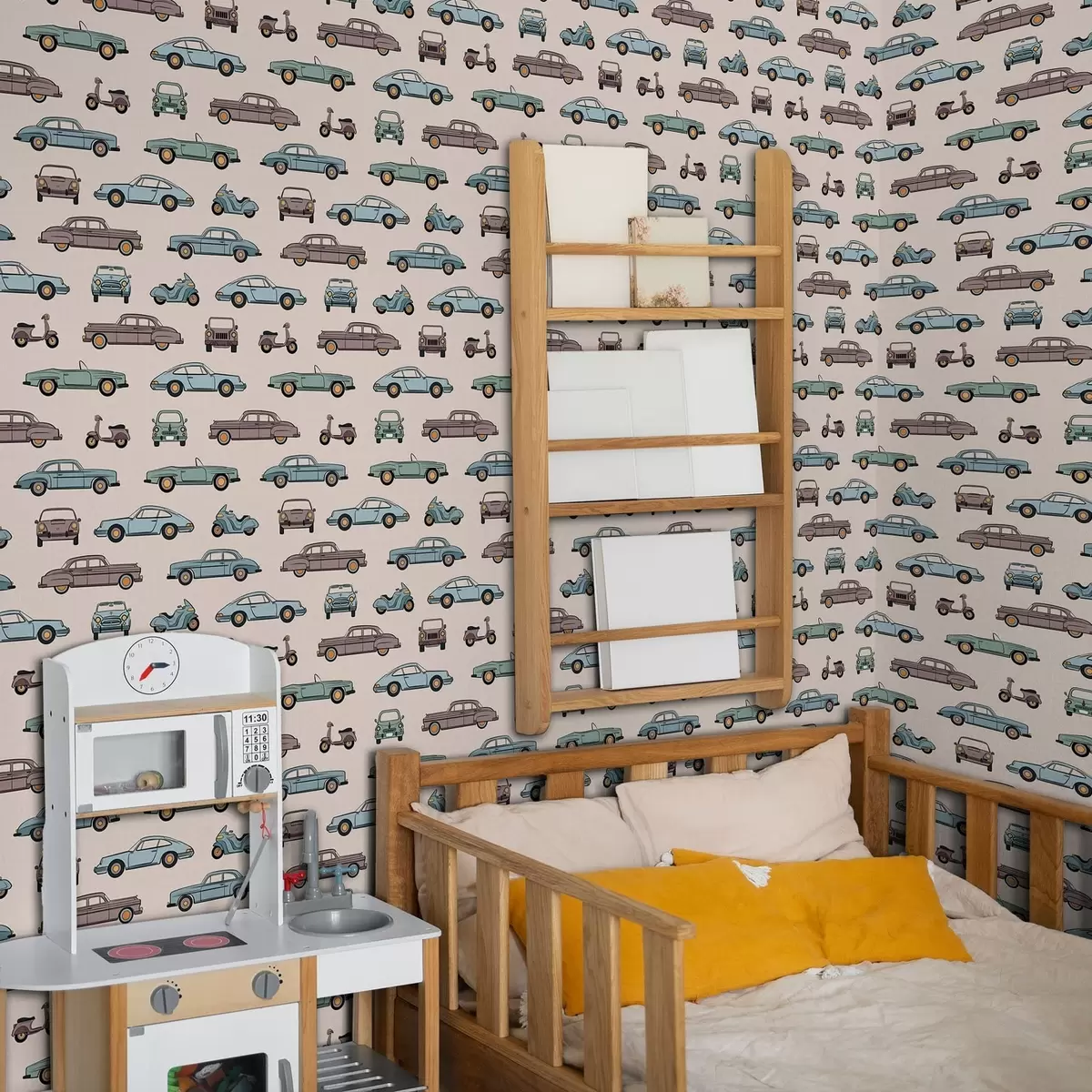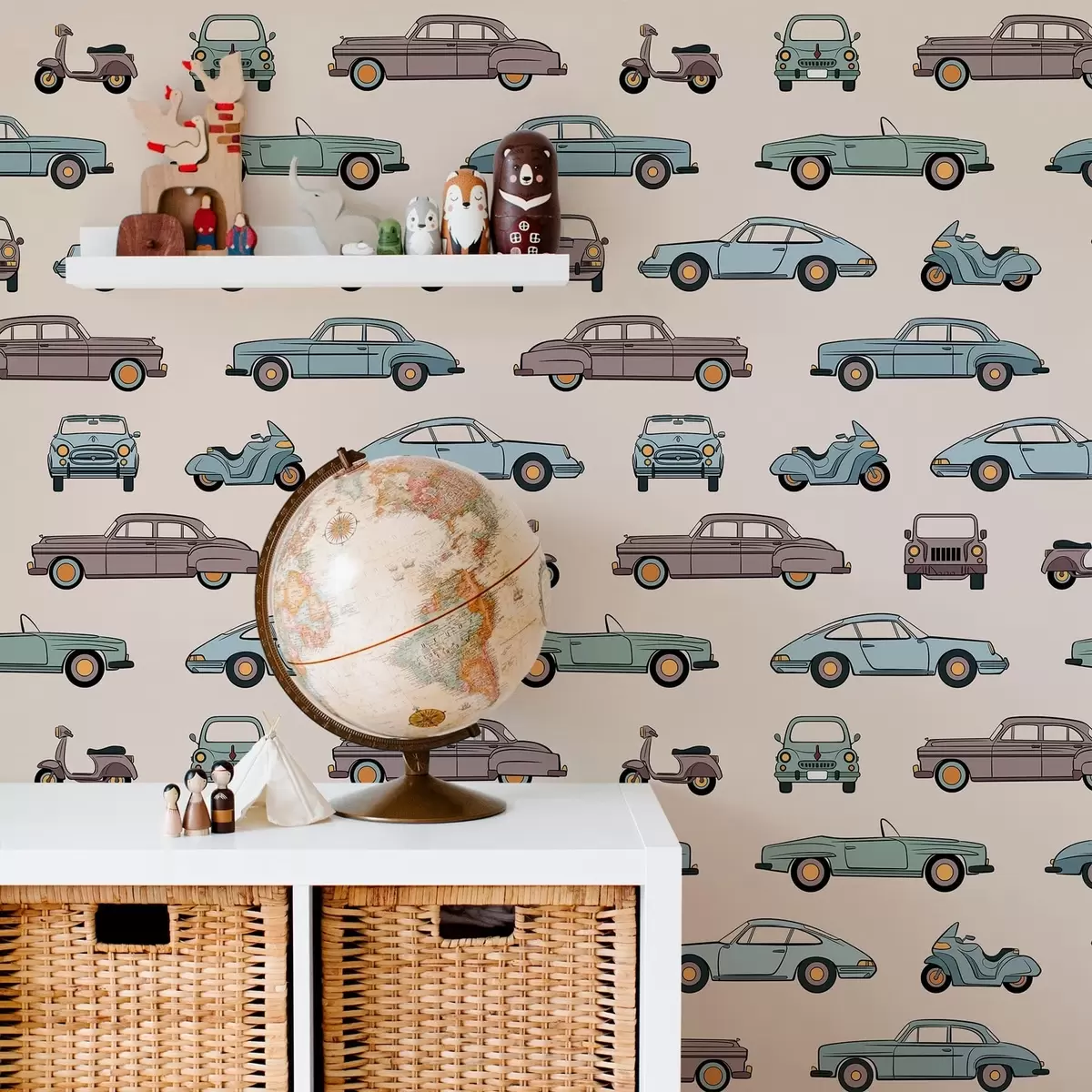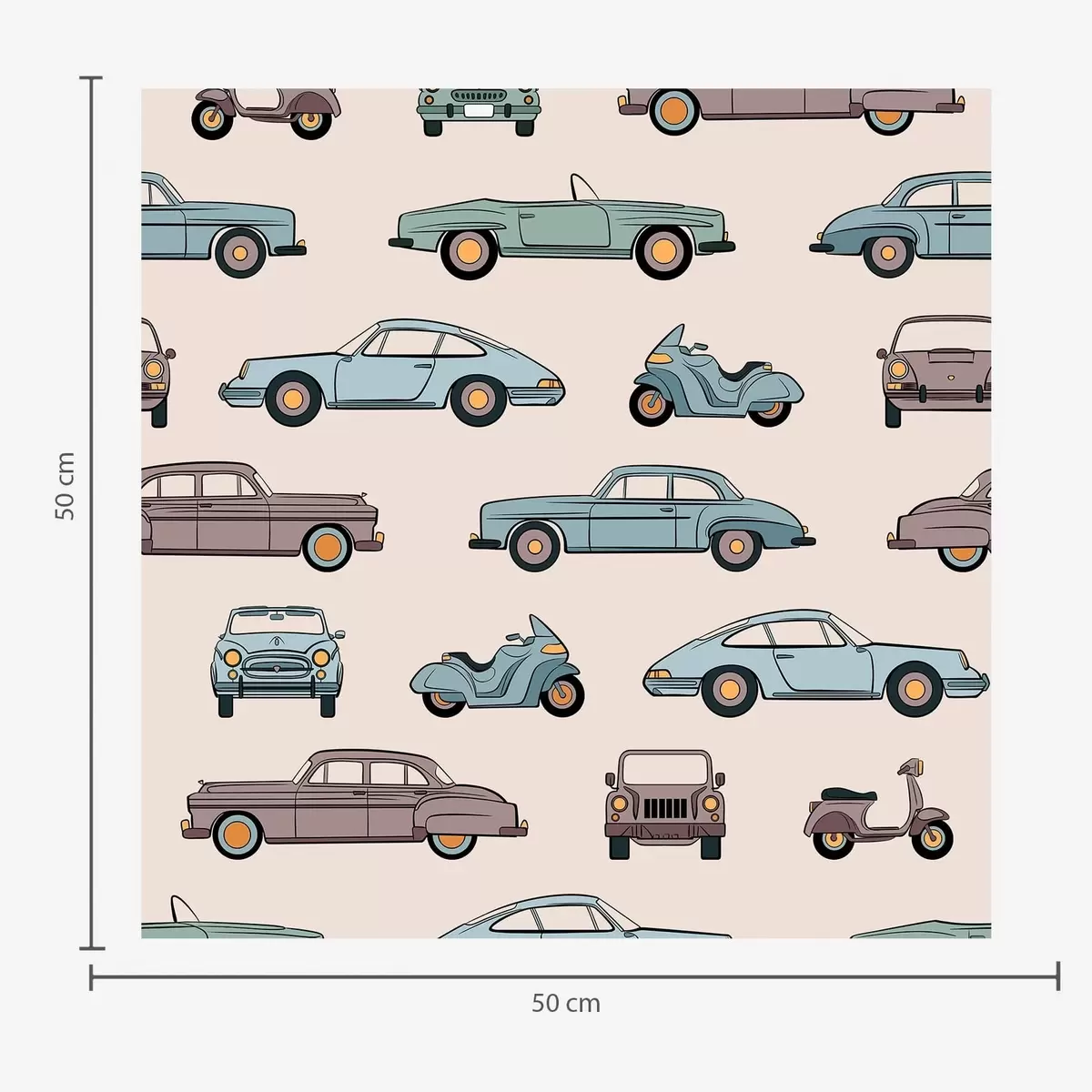 Ταπετσαρία Ρετρό αυτοκίνητα και σκούτερ σε μπεζ φόντο Nr. a01178v1