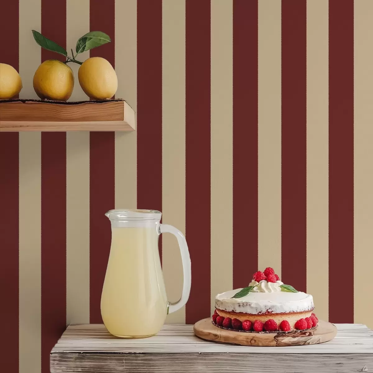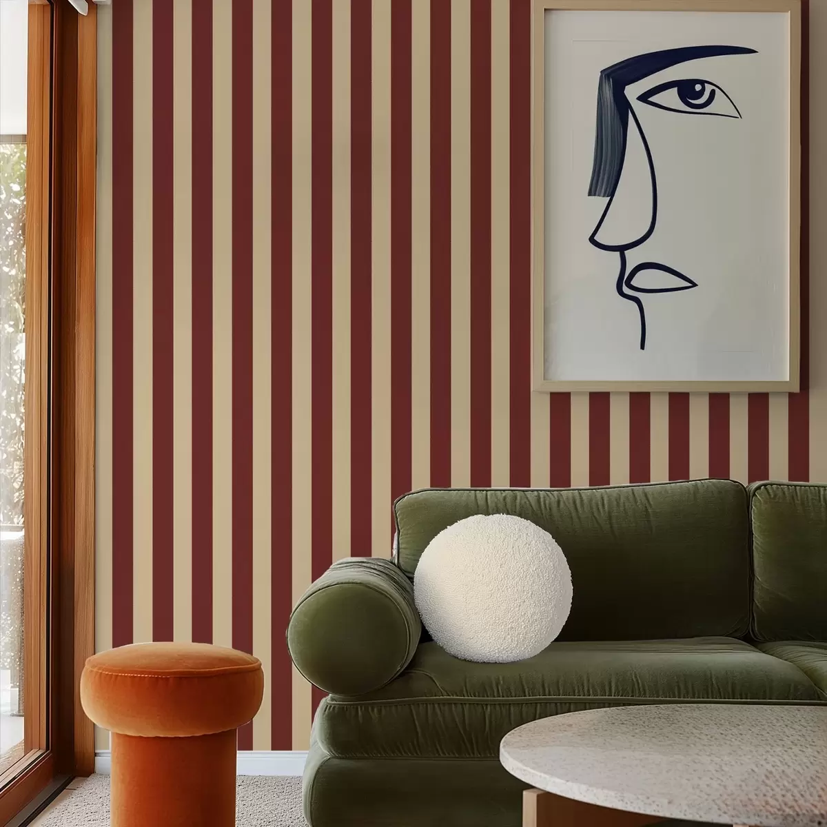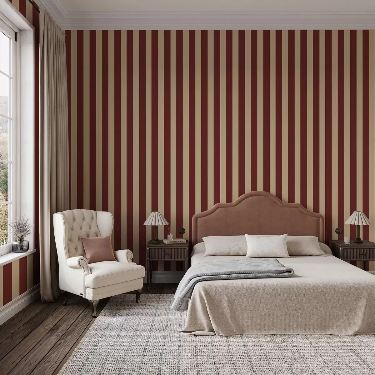 Ταπετσαρία Κόκκινες και μπεζ κάθετες ρίγες Nr. a01179