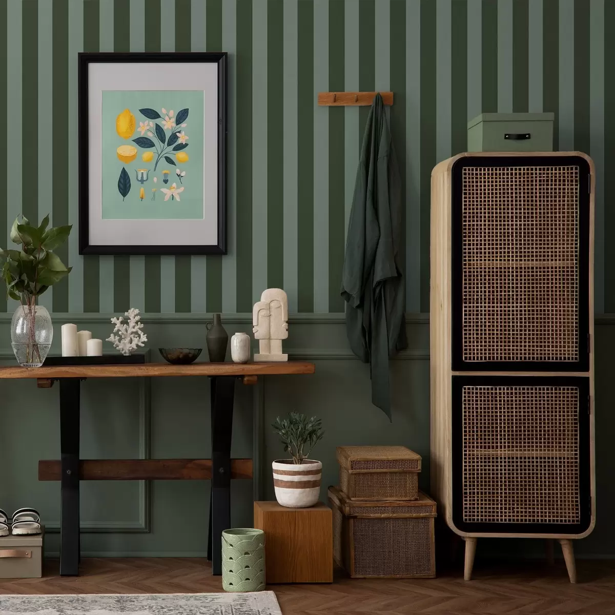 Ταπετσαρία Σκούρες πράσινες και ανοιχτόχρωμες κάθετες ρίγες Nr. a01179v4