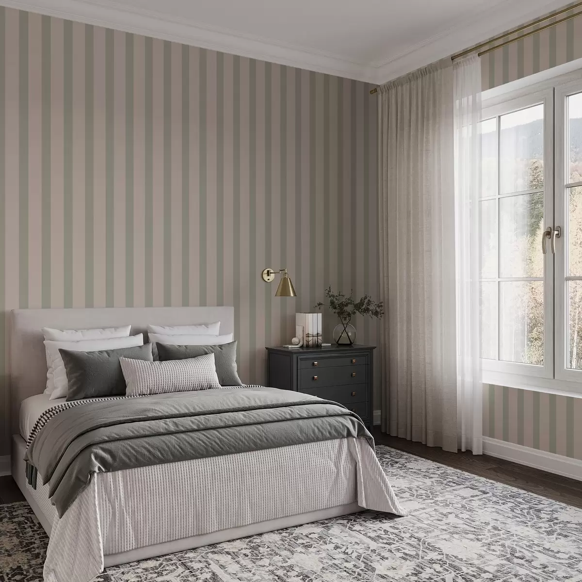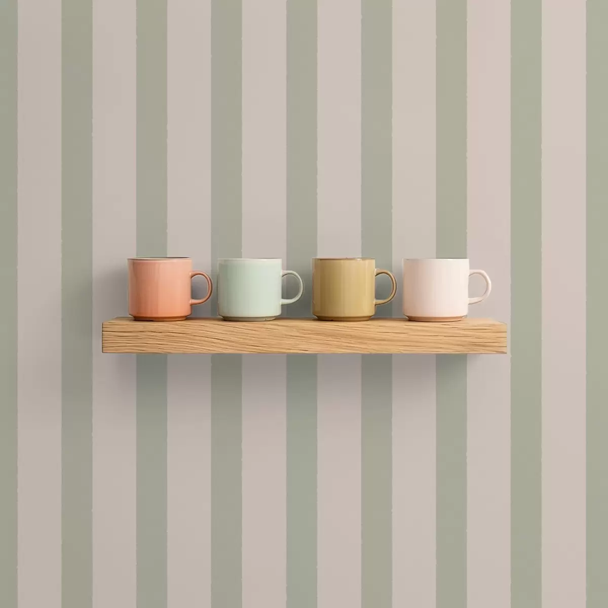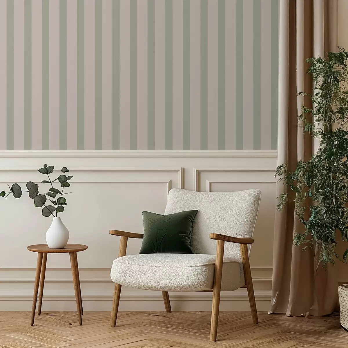 Ταπετσαρία Πράσινες και μπεζ κάθετες ρίγες Nr. a01180