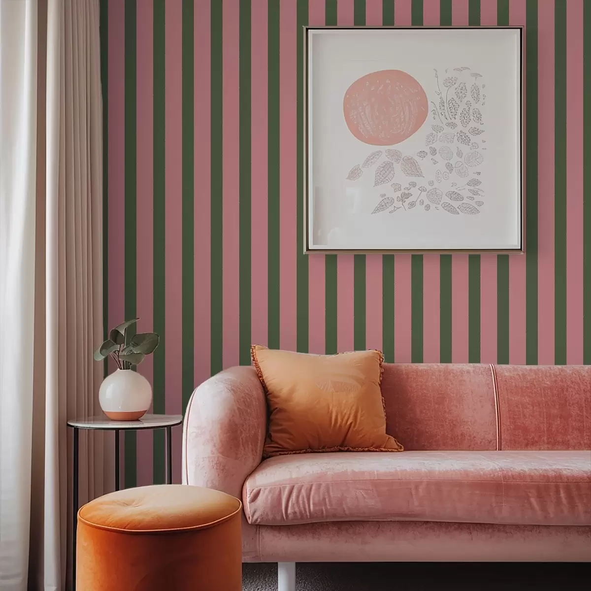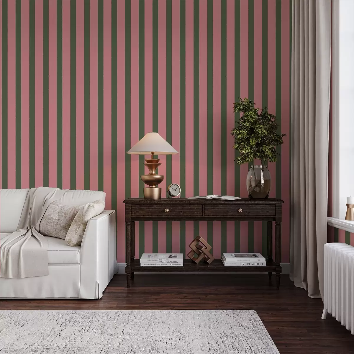 Ταπετσαρία Ροζ και πράσινες κάθετες ρίγες Nr. a01180v2
