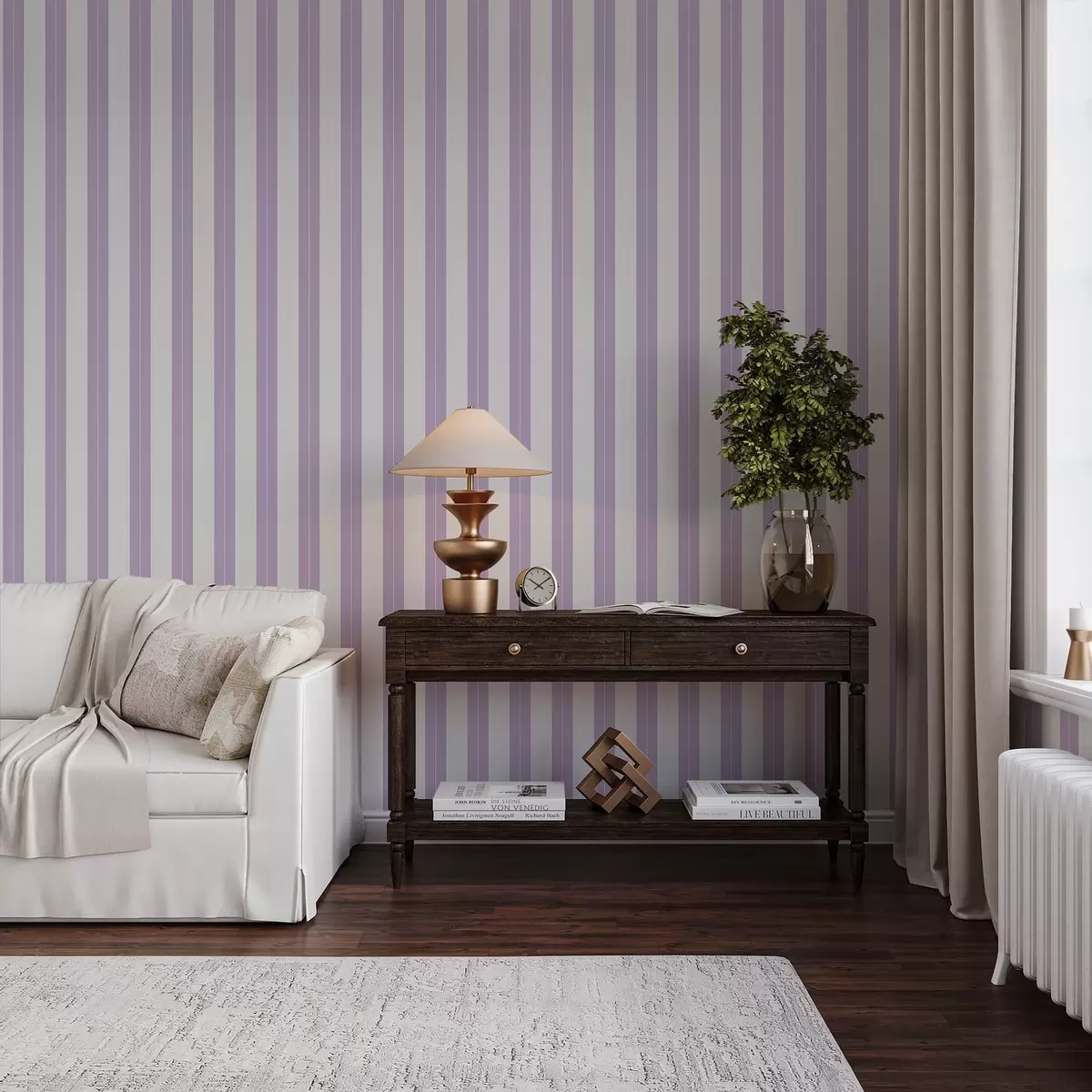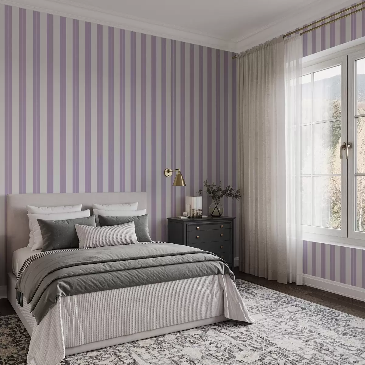 Ταπετσαρία Ανοιχτό μωβ και γκρι κάθετες ρίγες Nr. a01181v3